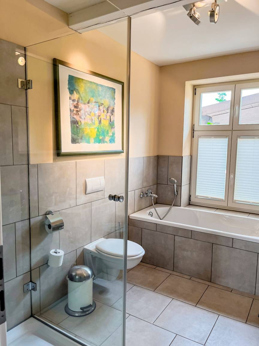 Badezimmer: Komfortables Bad mit Dusche und Badewanne