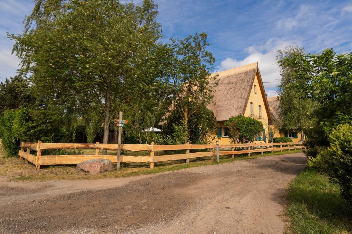 Ferienhaus Schwalbe – Rollstuhlgerechtes Reetdachhaus mit Schwimmteich und großer Gartenanlage in Krienke