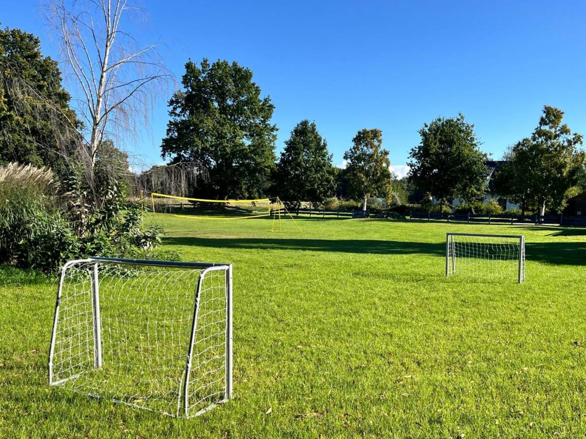 Weitläufige Spielwiese: Ideal für Aktivitäten mit Kindern (z.B. Fußballtore, Volleyballnetz)