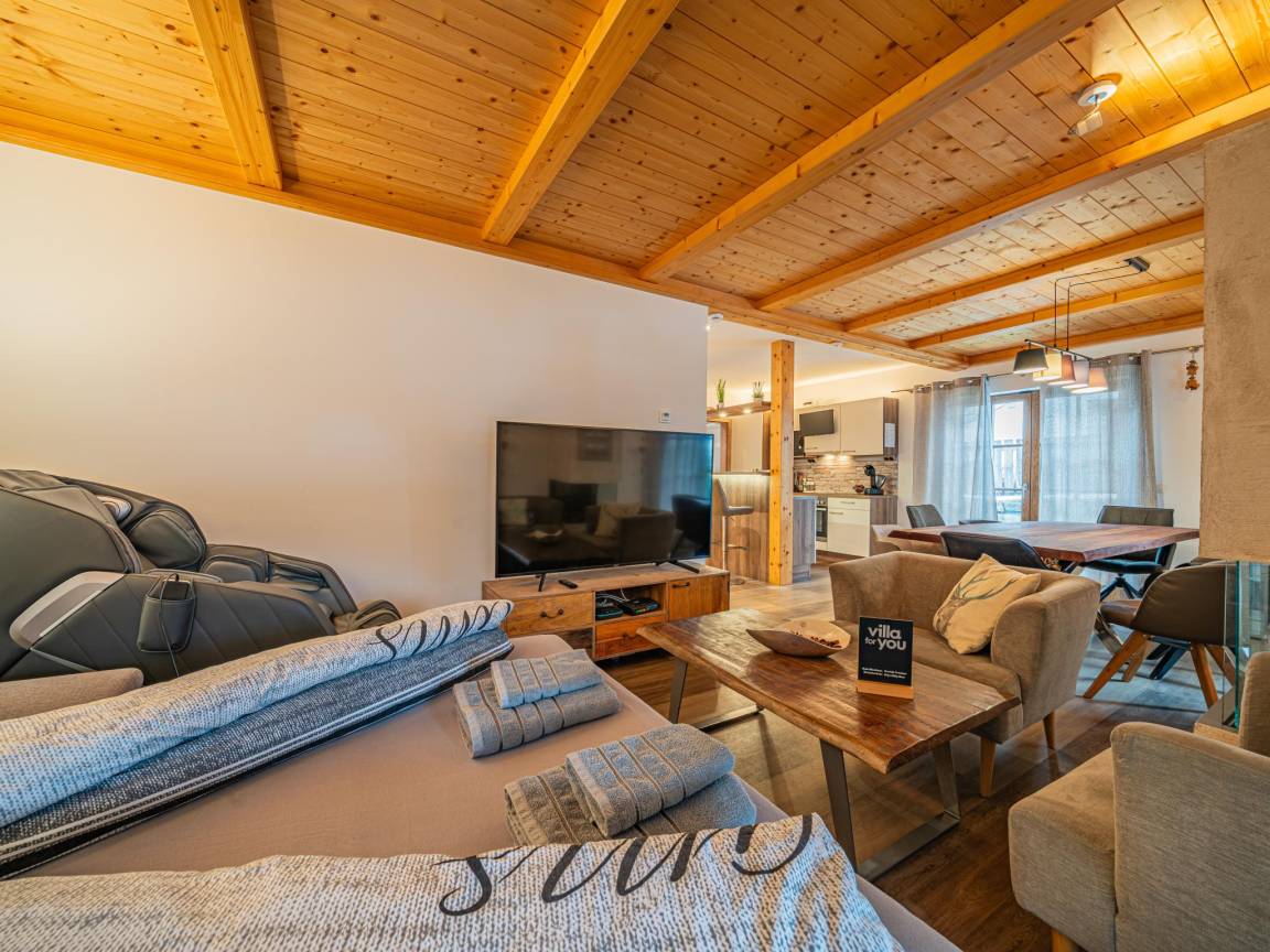 Skiabstellraum mit Skischuhheizung , 1x Carport(1 Parkplatz), Sauna, Terrasse(überdacht), Garten(alleinige Nutzung, umzäunt, 175 m²), Gartenmöbel, BBQ(Holzkohle), 1x Parkplatz, 1x Kinderbett (inklusive Bettwäsche), 1x Hochstuhl, Lademöglichkeit für Elektroautos