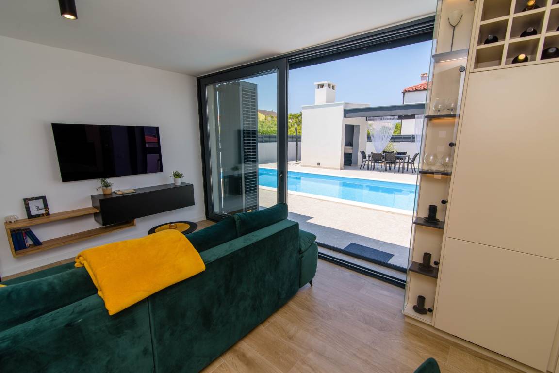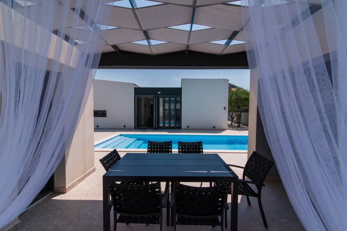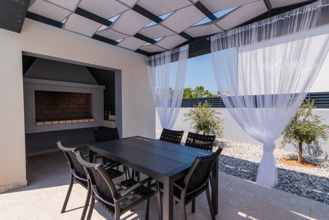 The outdoor area boasts magnificent views of the majestic Velebit, creating a truly magical backdrop for your vacation. The poolside ambiance and bbq are just the perfect to enjoy the life to the fullest, enjoy each other's company and live the moment. Sit around the table, share stories, laugh, dine al fresco, while others engage in swimming, sunbathing or simply lounging by the pool.