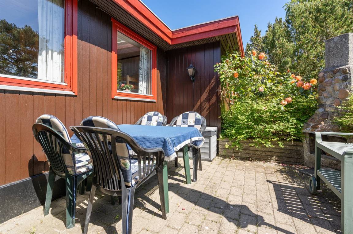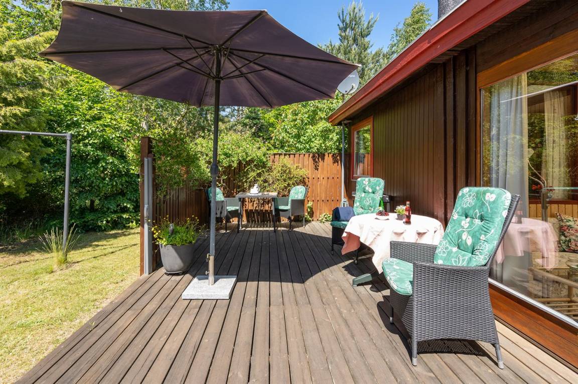 DraußenDie Ferienunterkunft liegt auf einem 1400 m² großen Gartengrundstück. Das Grundstück ist eingezäunt. Die Entfernung zum Meer beträgt 550 m. Die nächste Einkaufsmöglichkeit liegt 1000 m entfernt. Es steht ein offenes Terrassenareal zur Verfügung. Parkplatz auf dem Grundstück.