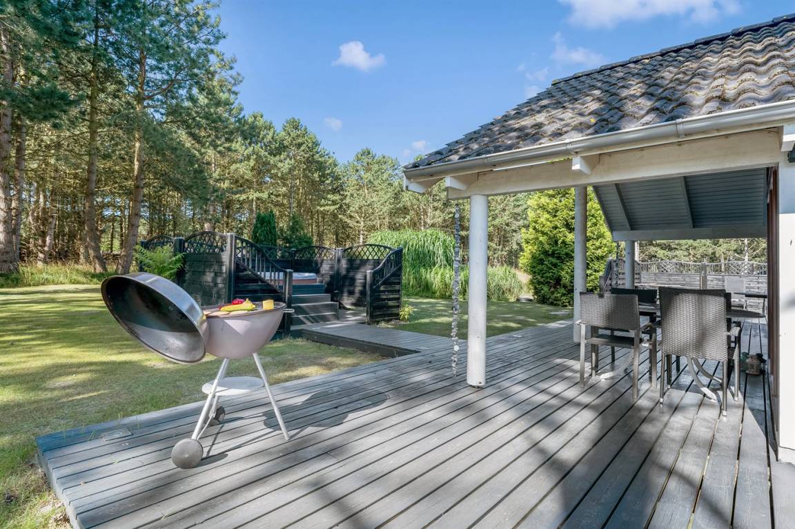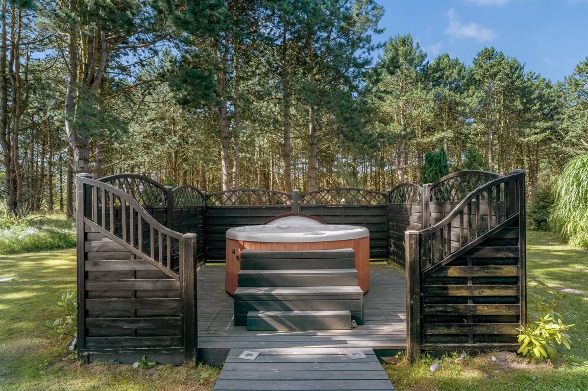 Ein erstklassiges Ferienhaus mit Innen- und Außenwhirlpool. Das Haus liegt auf einem Naturgrundstück - nur wenige hundert Meter vom herrlichen Badestrand der Ostsee entfernt. Zum Haus gehört ein schönes, zum Teil überdachtes Terrassenareal mit Gartenmöbeln. Übrigens: 2 der insgesamt 8 Schlafplätze befinden sich im offenen Obergeschoss des Hauses.
