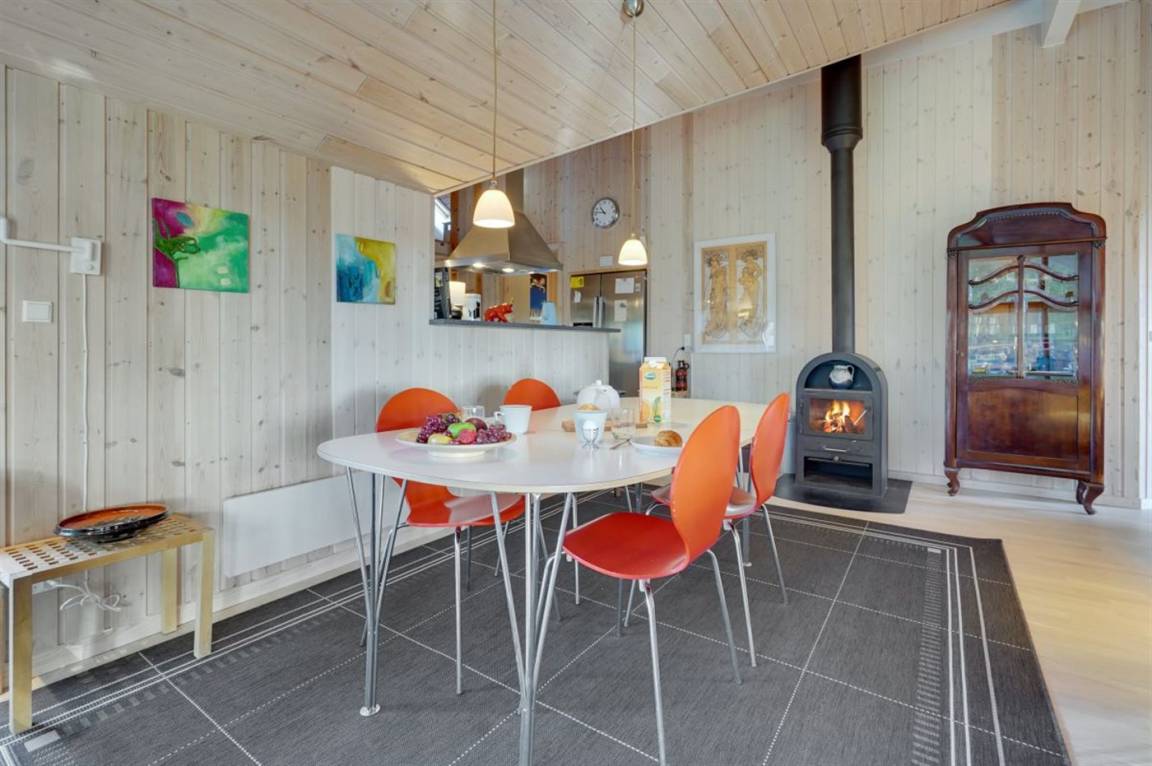 EinrichtungDas Ferienhaus eignet sich für 10 Personen. Die Ferienunterkunft hat eine Wohnfläche von 104 m² und wurde 2006 gebaut. Haustiere dürfen nicht mitgebracht werden. Die Ferienunterkunft ist mit energiesparender Wärmepumpe ausgestattet. Die Ferienunterkunft ist mit Waschmaschine ausgestattet. Wäschetrockner. Tiefkühlmöglichkeit mit 30 Liter Nutzinhalt. Es gibt außerdem einen Kaminofen. Für die jüngsten Feriengäste ist 1 Kinderhochstuhl vorhanden.
