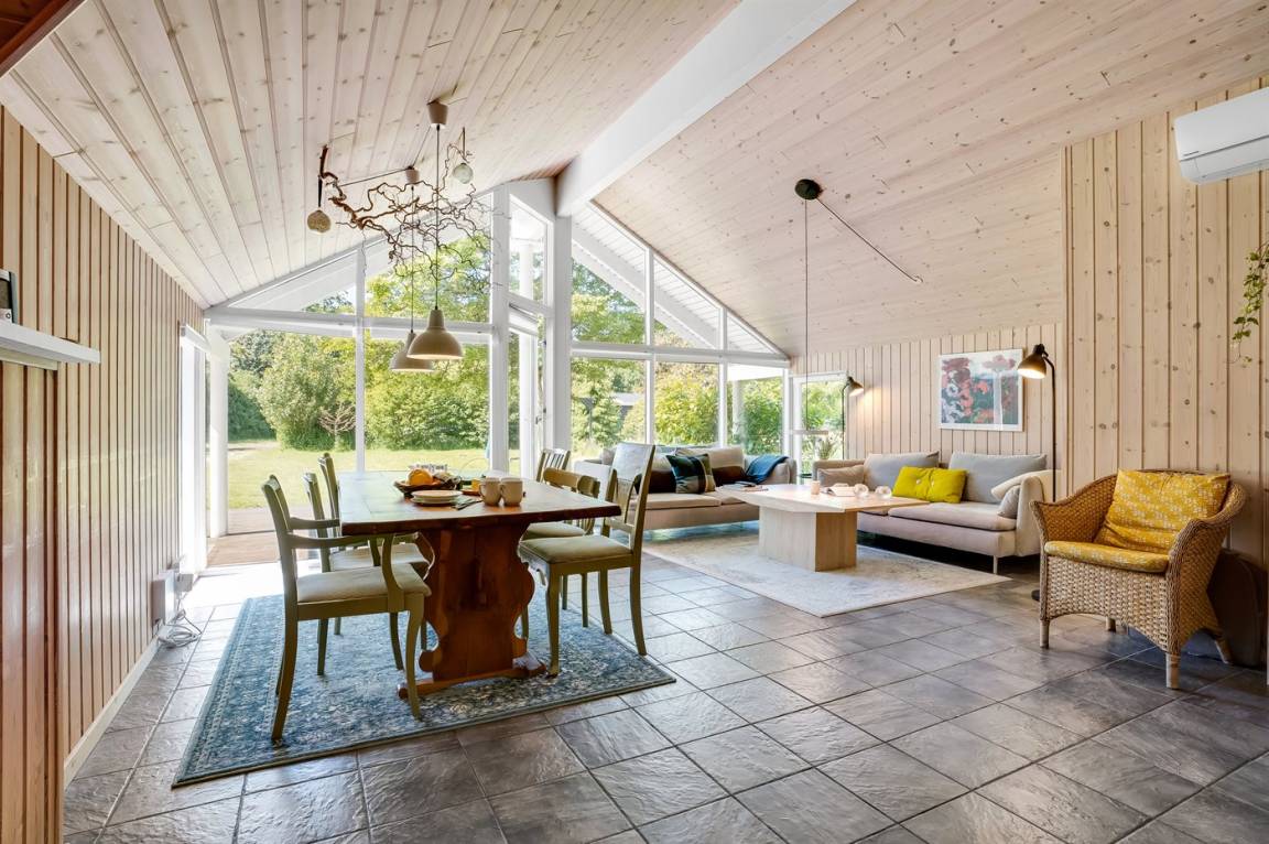 Du hast nur einen kurzen Spaziergang zum Strand von diesem schönen Grundstück aus, also gibt es viele Gelegenheiten für kleine Abstecher ans Wasser in deinem nächsten Urlaub. Hier steht dieses herrliche offene Ferienhaus, das gut ausgestattet ist mit Zimmern, gemütlichem Gemeinschaftsraum und einer Vielzahl von Einrichtungen für Familienunterhaltung. Du wachst auf mit einem schönen Blick auf die grüne Umgebung, den du auch während der Mahlzeiten am Esstisch genießen kannst. Wenn du von den Abenteuern des Tages zurückkehrst, warten die vielen Angebote des Hauses auf dich. Wärme dich im Whirlpool oder in der Sauna nach einem erfrischenden Spaziergang oder einem Bad im Wasser auf, während das Essen auf dem Herd köchelt, oder lehne dich mit guten Büchern auf dem Sofa zurück, während das Feuer im Kamin knistert.