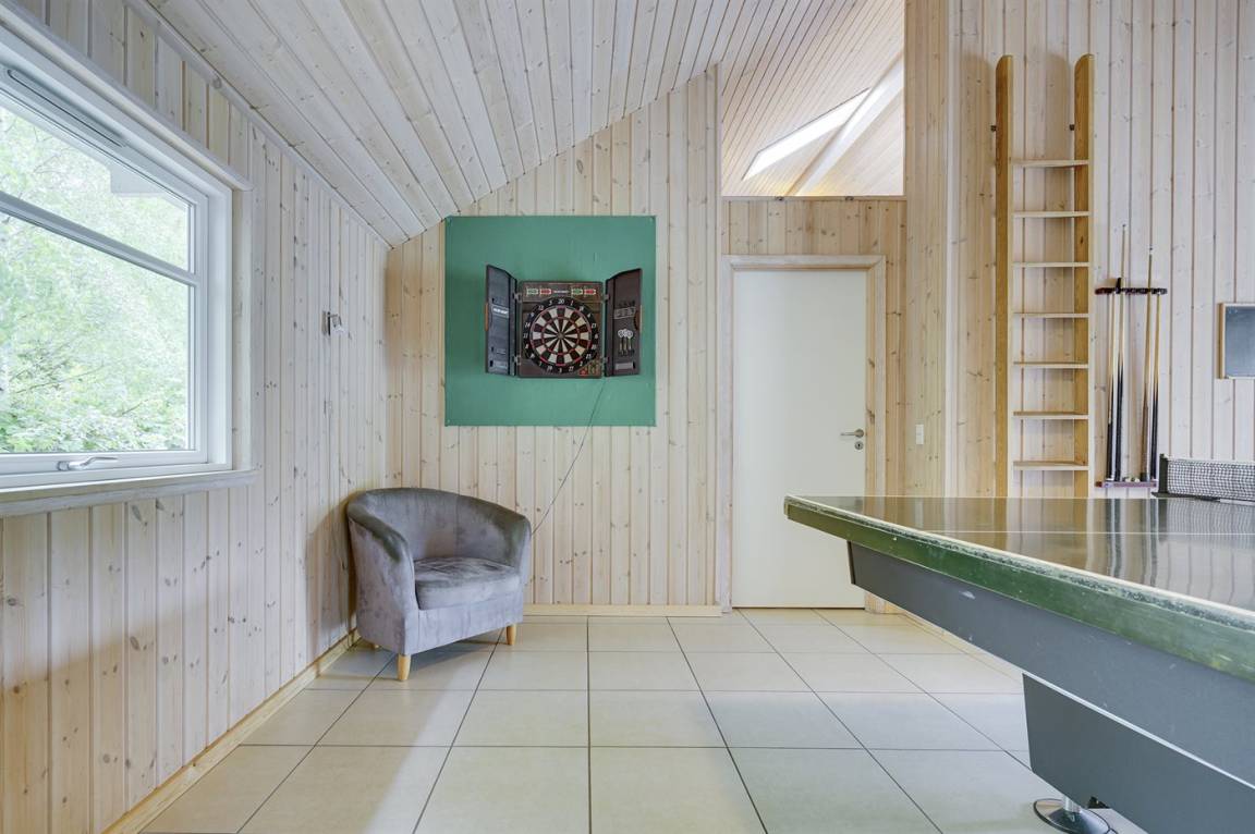 „The vacation at the holiday home: Vi fik ikke noget at vide om postkasse, så vi fik først vores omdirigerede aviser den sidste dag, da vi ved et tilfælde opdaget skuret. En sofa i stuen var i stykker, så den var i fare for at gå fra hinanden. Grebene på begge køleskabe var i stykker og lappet med gaffatape, babygynge var i stykker, og svaber i poolrum var gennemtæret, så den knækkede ved første anvendelse. Sommerhuset var væsentligt mere slidt, end fotos viste. Dartpile i aktivitetsrummet var for de fleste piles vedkommende defekte. De defekte dele bør fjernes, når det konstateres - og det skal ikke være lejer, der gør det. Cleanliness: Vi fandt en gammel pommesfrit i køkkenskabet med gryder, og flere gryder måtte vaskes op, inden ibrugtagning. I forbindelse med slutrengøringen kunne vi konstatere - især i poolrummet - at der ikke var gjort rent i hjørner og kroge“