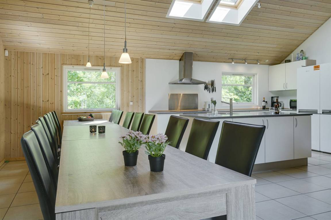 EinrichtungDas Ferienhaus eignet sich für 18 Personen sowie 1 Kleinkind bis zu 3 Jahren. Die Ferienunterkunft hat eine Wohnfläche von 206 m² und wurde 2006 gebaut. Es ist erlaubt 2 Haustiere mitzubringen. Die Ferienunterkunft ist mit Waschmaschine ausgestattet. Wäschetrockner. Tiefkühlmöglichkeit mit 140 Liter Nutzinhalt. Es gibt außerdem einen Kaminofen. Für die jüngsten Feriengäste ist 1 Kinderhochstuhl vorhanden.