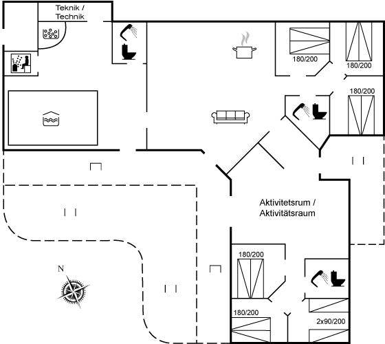 MultimedienIn der Ferienunterkunft gibt es einen Fernseher. DVD-Player. Radio. Stereoanlage. CD-Player. Mindestens 4 dänische Fernsehsender. Mindestens 4 deutsche Fernsehsender. Es steht kabellose Internetverbindung zur Verfügung.