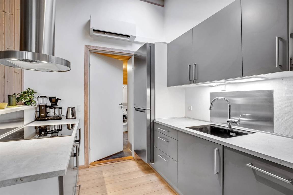 KücheDie Küche ist mit Kühlschrank ausgestattet. Außerdem gibt es 4 Induktions-Kochzonen, Umluftofen, Mikrowelle, Airfryer sowie Geschirrspüler.