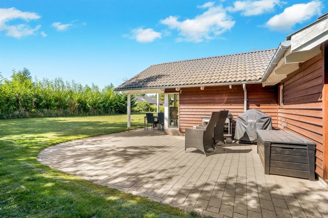 Draußen erwartet dich eine teilweise überdachte Terrasse mit Gartenmöbeln und Grill, und auf dem Grundstück gibt es Platz für Ballspiele und andere Aktivitäten im Freien. Nur wenige Gehminuten vom Haus entfernt liegen der Strand und das Meer – hier können du und deine Familie herrliche Stunden verbringen.