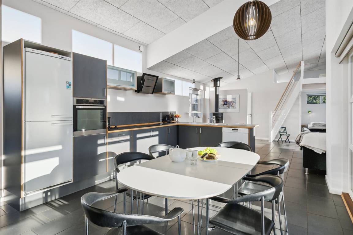 Schönes und geräumiges Ferienhaus auf einem geschlossenen Grundstück im kleinen Fischerdorf Rødvig nahe schönem, kinderfreundlichem Badestrand gelegen. Das Haus ist hell und einladend eingerichtet mit 4 Schlafplätzen in zwei offenen Obergeschossen, beide mit einer guten Treppe.