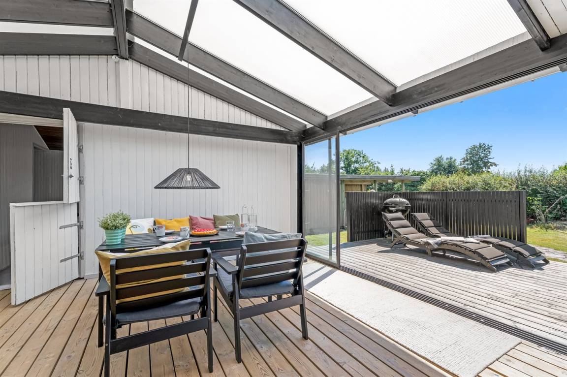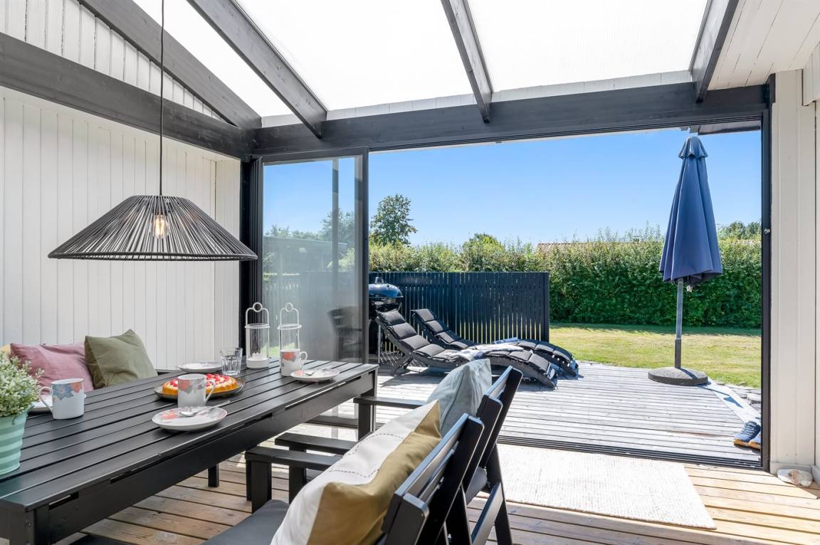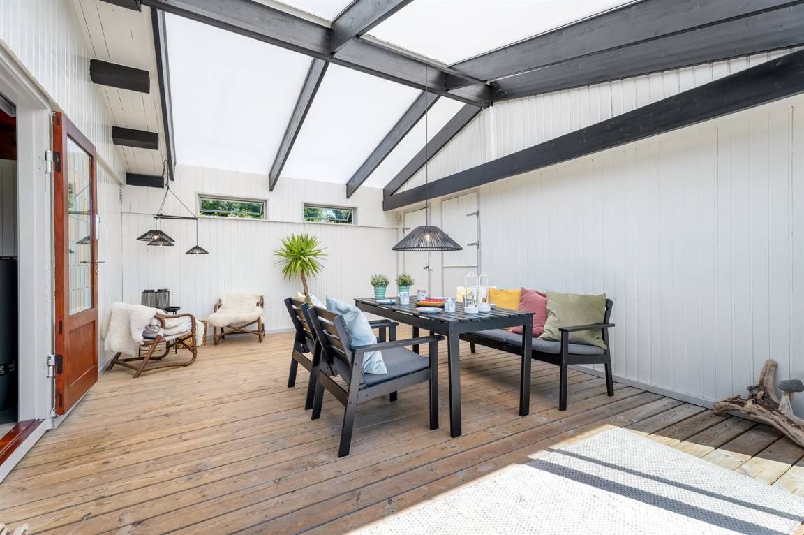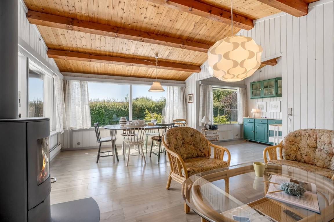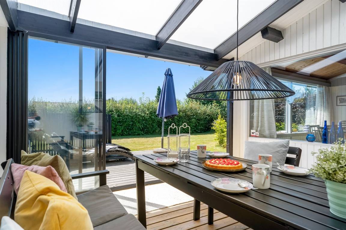 Das Ferienhaus hat einen schönen Wintergarten, in dem man die Tür komplett zur Terrasse öffnen kann, wo es einen Grill und Gartenmöbel gibt. Für die Kleinen gibt es außerdem einen Sandkasten, ein Spielhaus und ein Fußballtor. Es gibt eine Luft/Luft-Wärmepumpe im Haus und einen schönen Kaminofen für gemütliche Abende an kühleren Tagen.