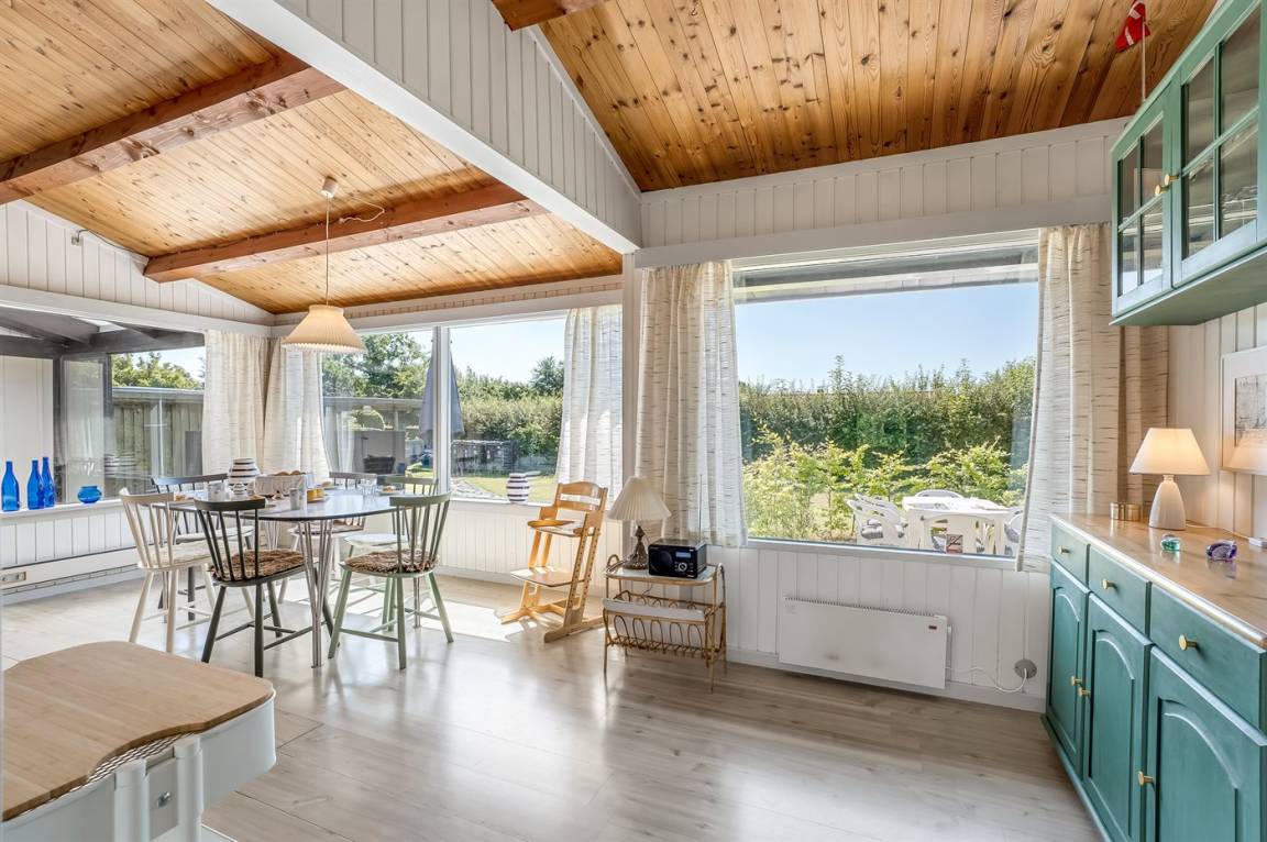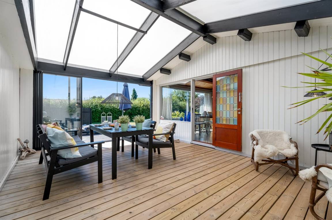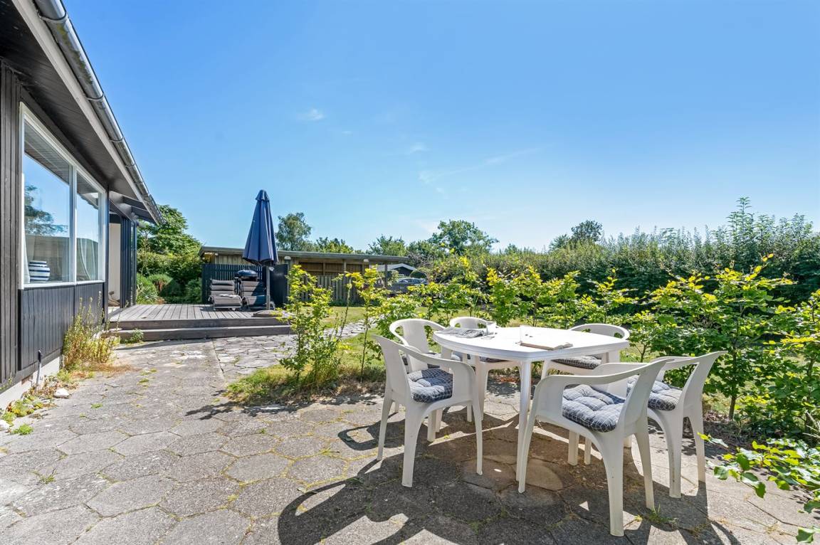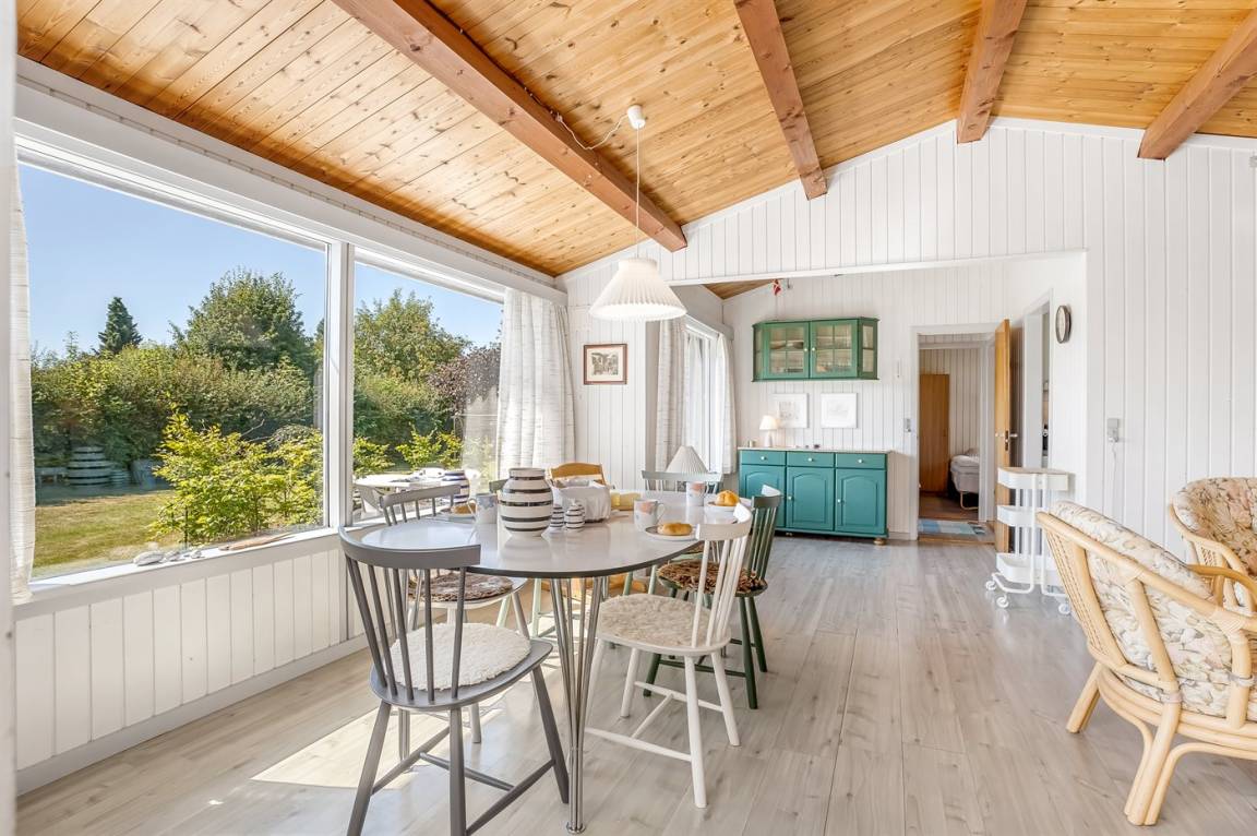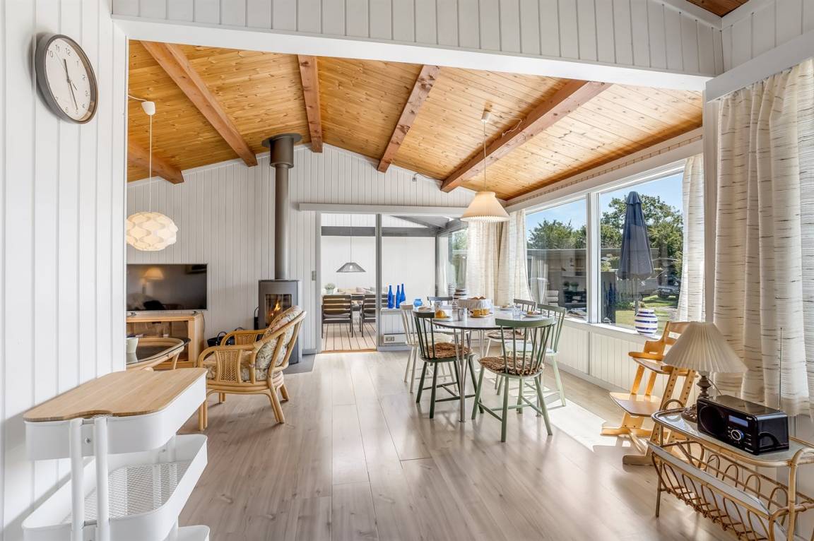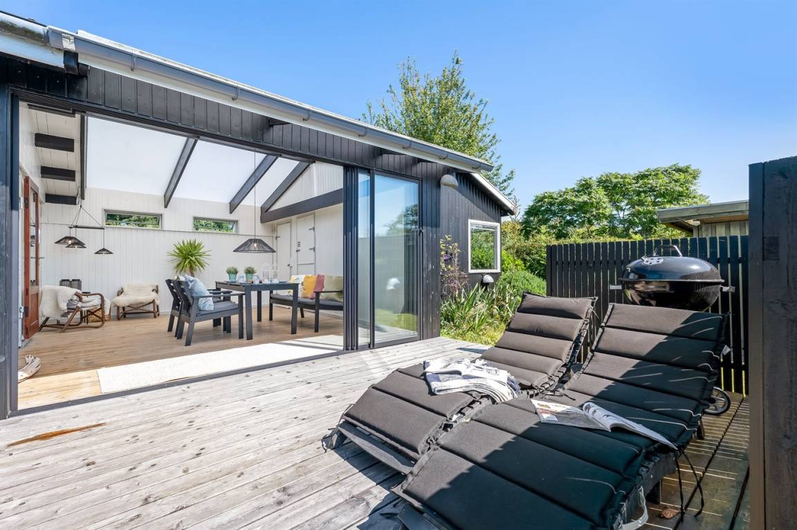 Das Ferienhaus hat einen schönen Wintergarten, in dem man die Tür komplett zur Terrasse öffnen kann, wo es einen Grill und Gartenmöbel gibt. Für die Kleinen gibt es außerdem einen Sandkasten, ein Spielhaus und ein Fußballtor. Es gibt eine Luft/Luft-Wärmepumpe im Haus und einen schönen Kaminofen für gemütliche Abende an kühleren Tagen.