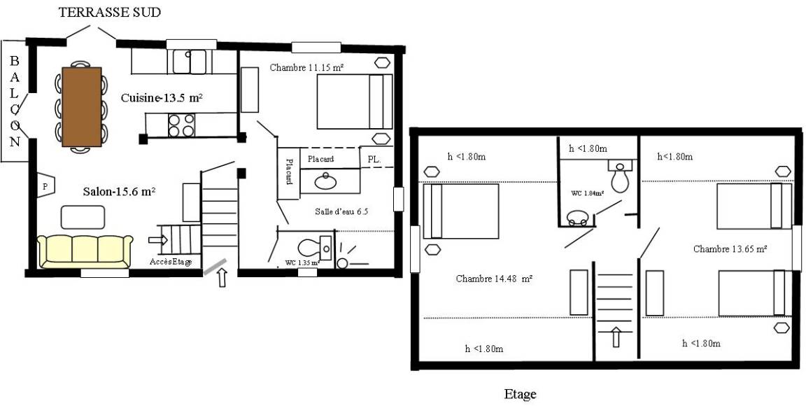 85 m² Gîte ∙ 3 Schlafzimmer ∙ 6 Gäste