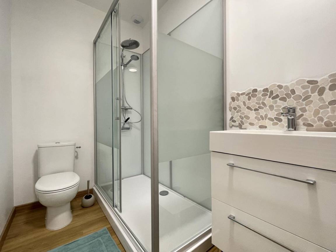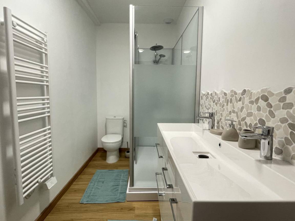- Badezimmer (große Dusche, 2 Waschbecken, 1 WC)
