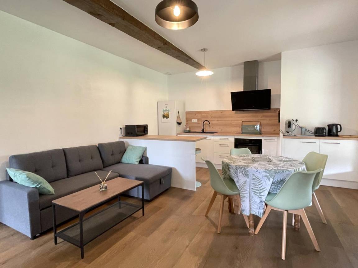 „Séjour très agréable dans une maison confortable avec un jardin dans lequel notre petit chien s'est éclaté! le village est sympa avec une belle architecture locale et la montagne est tellement belle. Très bon accueil des propriétaire toujours à l'écoute de leurs locataires.“