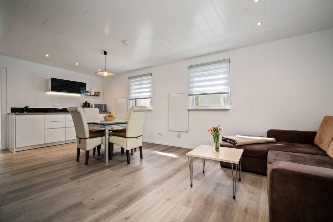 Das Ferienhaus Kira in Rechlin bietet auf 65 m² modern ausgestattete Räumlichkeiten und eignet sich ideal für bis zu drei Personen. Die Unterkunft verfügt über ein Schlafzimmer mit Vinylboden sowie ein großzügiges Wohnzimmer, das eine Sofaecke und einen digitalen TV (44–55 Zoll) umfasst. Die offene Küche ist mit einem 2-Platten-Elektroherd, Mikrowelle, Kühlschrank mit Gefrierfach, Geschirr, Besteck und verschiedenen Küchenutensilien ausgestattet. Das Badezimmer bietet eine bodengleiche Dusche und einen Haartrockner. Kostenloses WLAN sowie eine Waschmaschine stehen ebenfalls zur Verfügung. Die große Fensterfront sorgt für Tageslicht und Privatsphäre. Kontaktloser Check-in/Check-out und zwei kostenlose Privatparkplätze am Haus bieten zusätzlichen Komfort. Haustiere sind willkommen, während Jugendgruppen nicht gestattet sind.