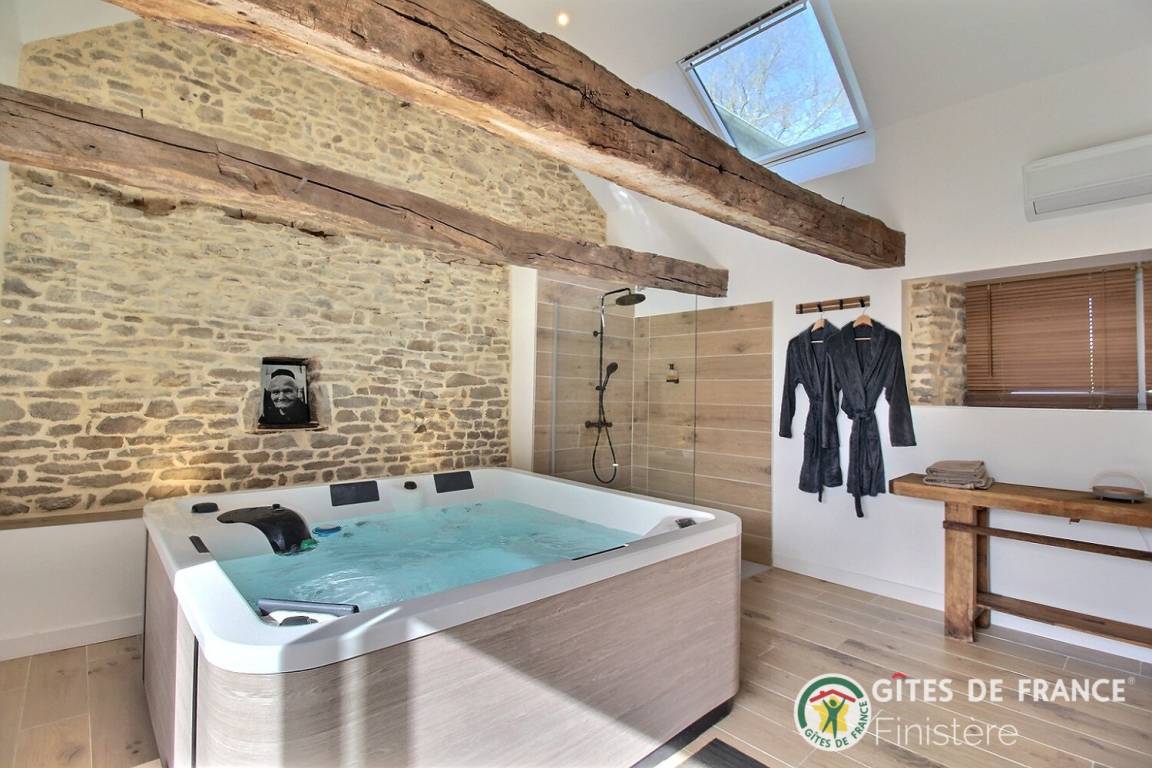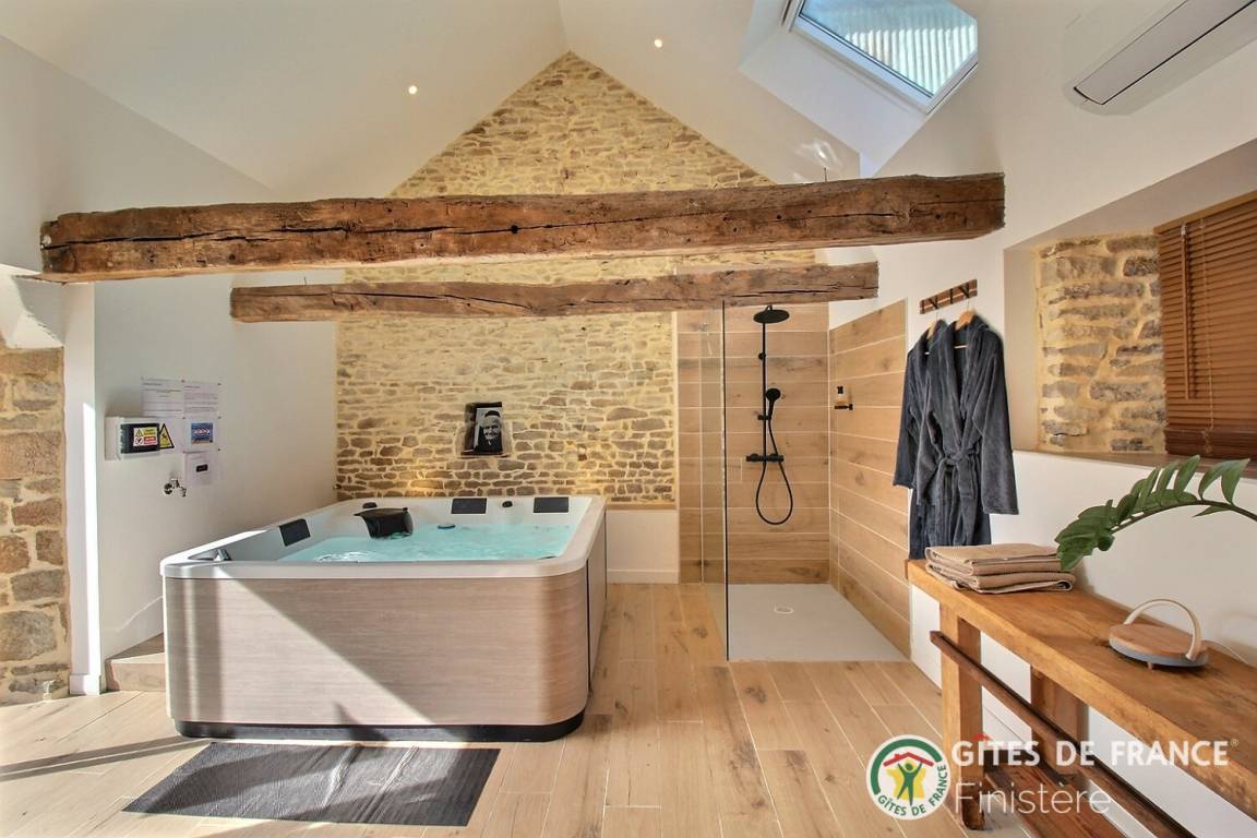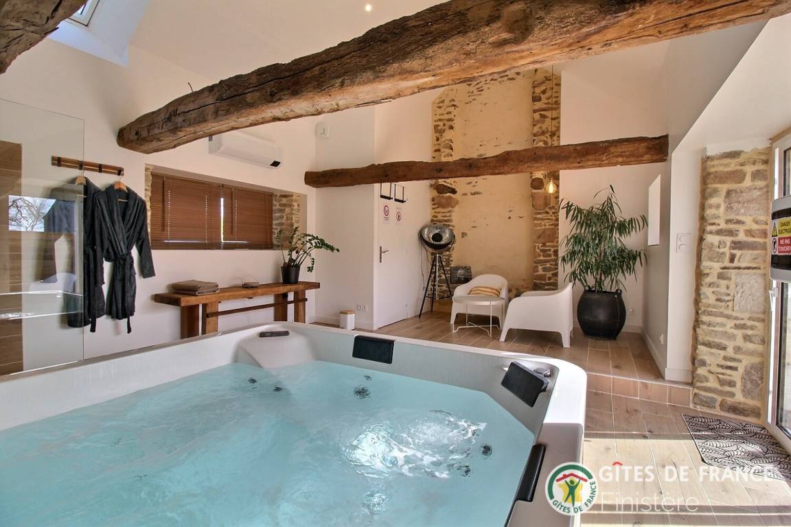 „Un premier contact assez déroutant reçu par SMS, où dans le deuxième on nous indique déjà les règles à suivre pour le logement et espace bien être. Le gîtes « tout compris (incluant le chauffage et ménage) » est fort heureusement bien isolé. Car en cette période de mi septembre où les températures matinal étaient très fraiches, nous n’avons pas eu la télécommande régulant le chauffage, nous aurions du la demandé à la propriétaire. Nous aurions aimer avoir un peu plus d’intimité notamment dans la l’espace chambre salle de bain. Il aurait été préférable d’avoir un store où film sur la fenêtre de la chambre. L’espace bien être est quant à lui à une dizaine de mètre du gite, il faut passer pas la terrasse et un petit chemin à découvert…De plus le logement est situé dans un petit hameau de plusieurs habitations en campagne proche des grandes ville bretonne et de la Laïta où vous pourriez manger d’excellente galette dans un cadre enchanteur. Bref, un gîte agréable mais qui ne correspond pas à nos attentes, mais plairons à beaucoup d’autres. Nous avons pu parler à la propriétaire avant notre départ, pour lui donner notre ressenti, nous comprenons que par fautes à d’autres locataires elle à du prendre des précautions mais nous pensons qu’ils seraient préférables de les dires de vives voix..“