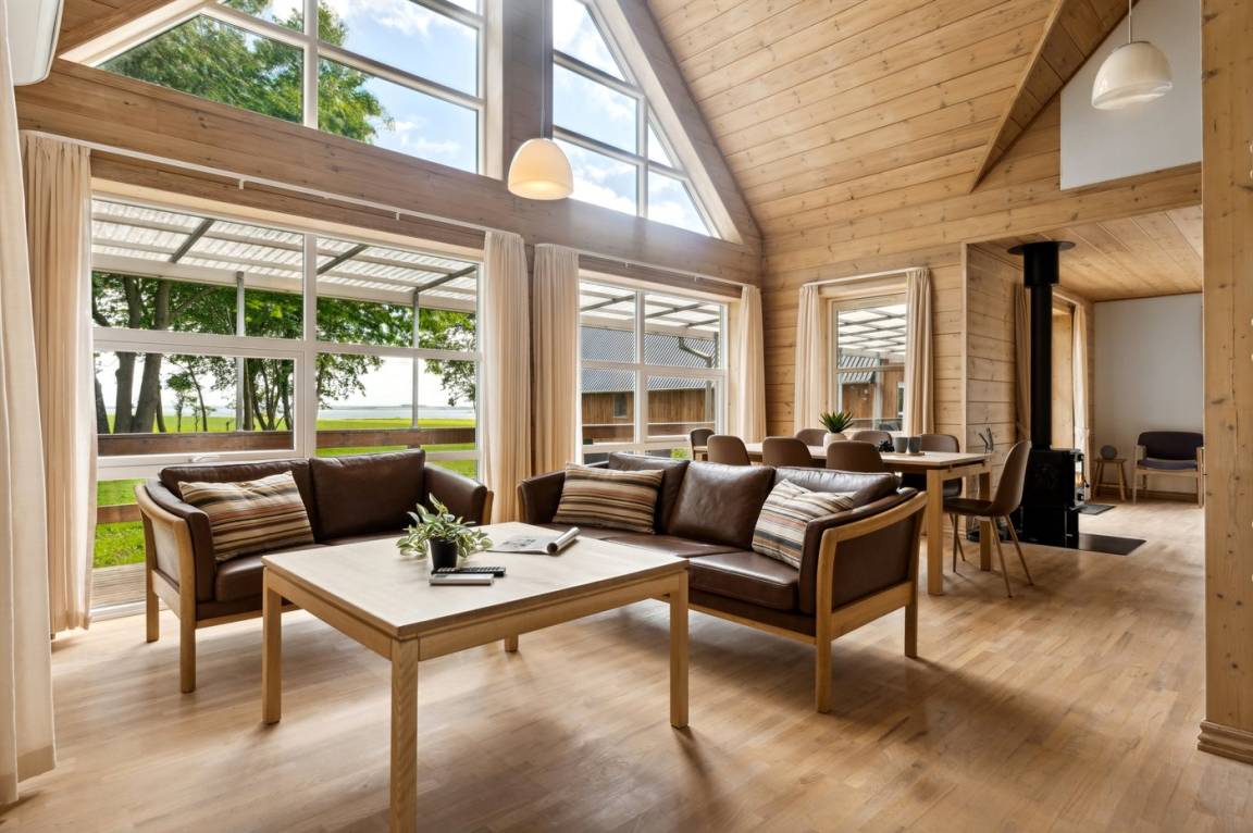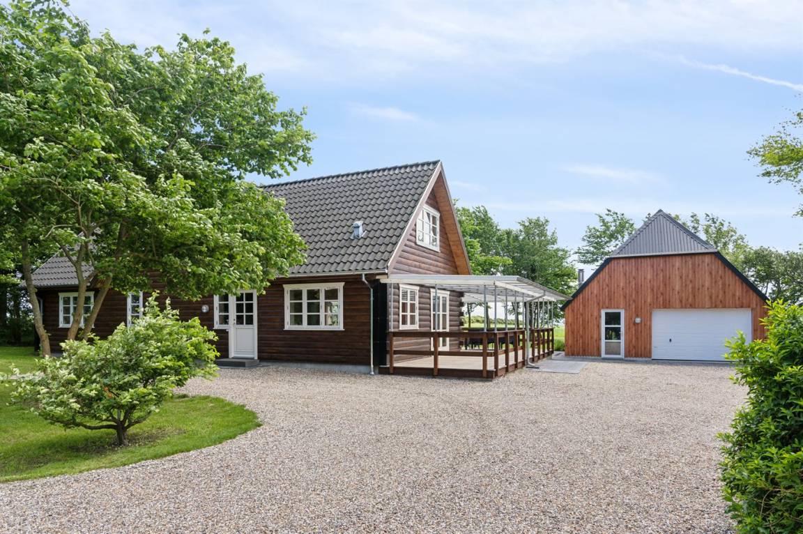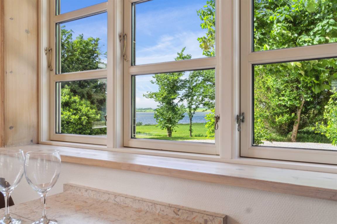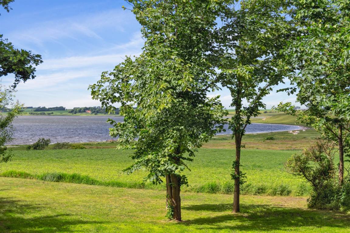 Ein schönes Ferienhaus in phantastischer Lage in ländlicher Umgebung mit Ausblick über den Limfjord von beiden Seiten des Hauses.