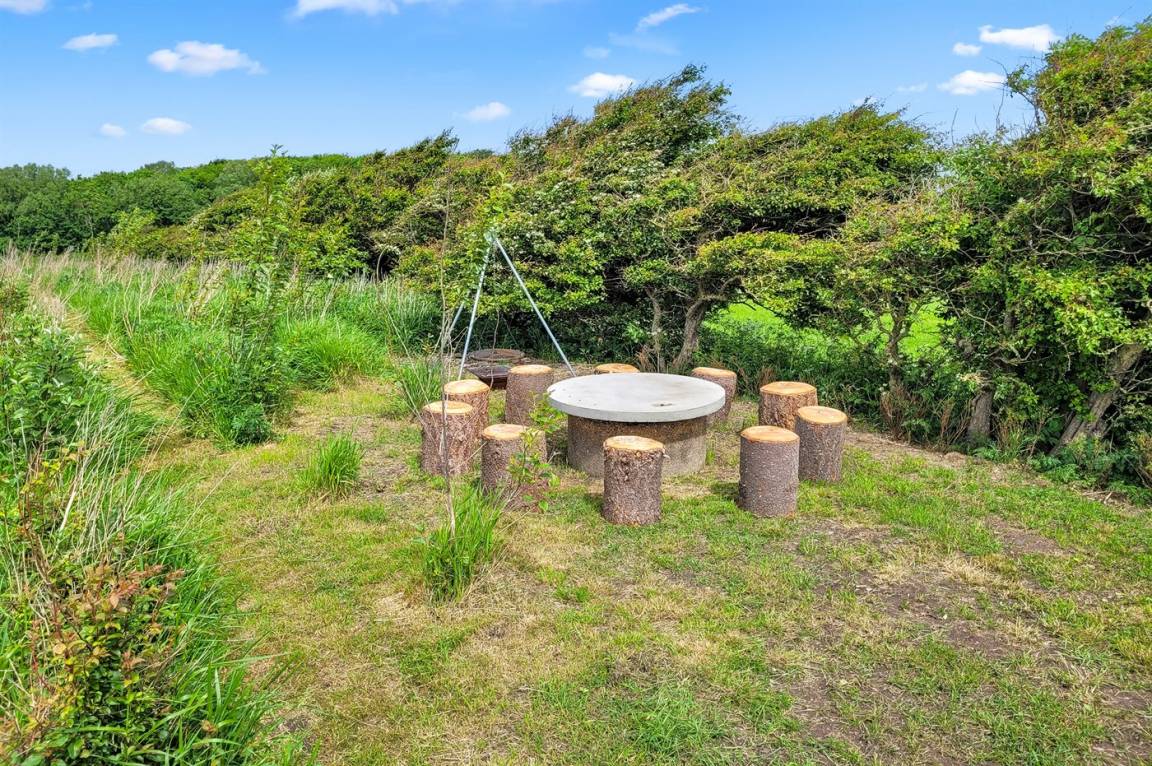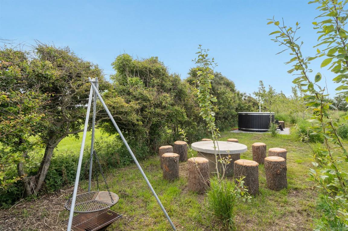 Die Ferienunterkunft liegt auf einem 15000 m² großen Naturgrundstück mit Zugang zu 115 m² offener Terrassenfläche, aufgeteilt in 3 Terrassen – wo immer ein vor dem Wind geschützter Platz zu finden ist. Die Entfernung zum Fjord beträgt 250 m. Die nächste Einkaufsmöglichkeit liegt 3000 m entfernt. In einem Abstand von 20000 m gibt es einen Golfplatz. Geräteraum. Fußballtor.Lagerfeuerstelle. Es steht ein Grill zur Verfügung. Es ist ein Ladestecker für Elektroautos installiert. Mit einer Ladeleistung von 11 kW. Parkplatz auf dem Grundstück.