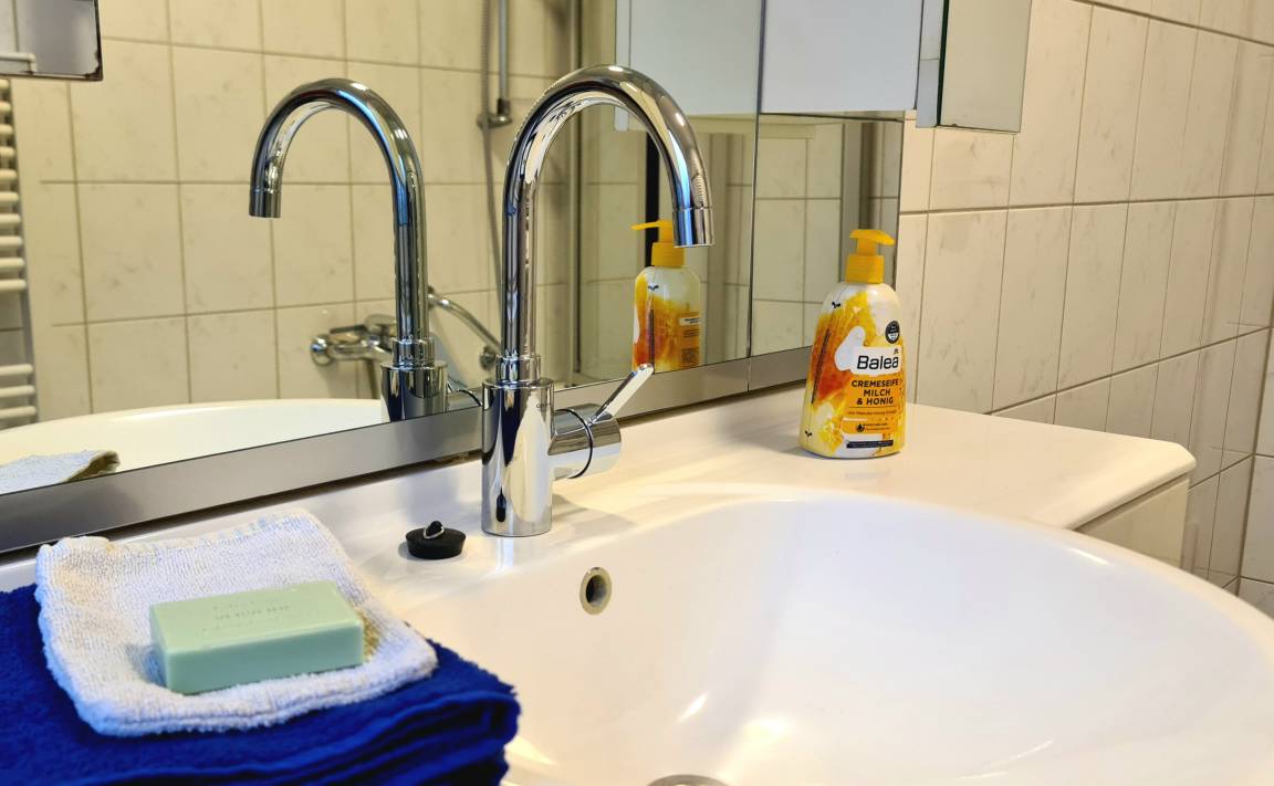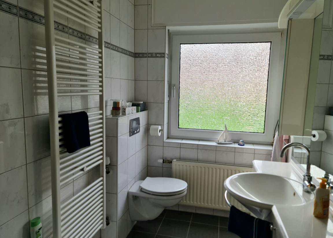 - geräumiges Bad mit Badewanne und Dusche, Handtuchtrockner, Fön