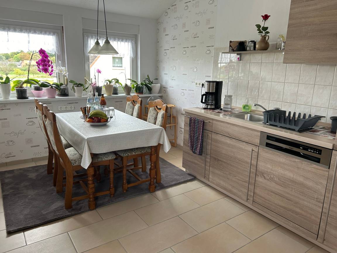 Die Küche ist modern und voll ausgestattet. Sie bietet zudem einen geräumigen Essbereich. Zusätzlich stehen 2 Kinderreisebetten sowie ein Zustellbett 90x 2,00m zur Verfügung. Das Badezimmer ist ausgestattet mit einer Dusche und einer Badewanne. Im Badezimmer befindet sich auch die Waschmaschine. Ein Trockner kann bei Bedarf gerne gegen Aufpreis von fünf Euro mit verwendet werden. Dieser steht separat im Kellerraum. Das Wohnzimmer Lädt zu gemütlichen Fernsehabenden ein. Überbelegung auf Anfrage.