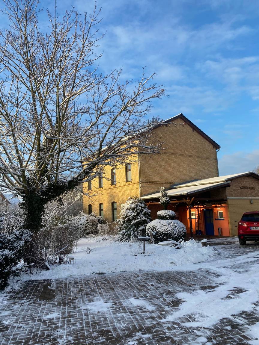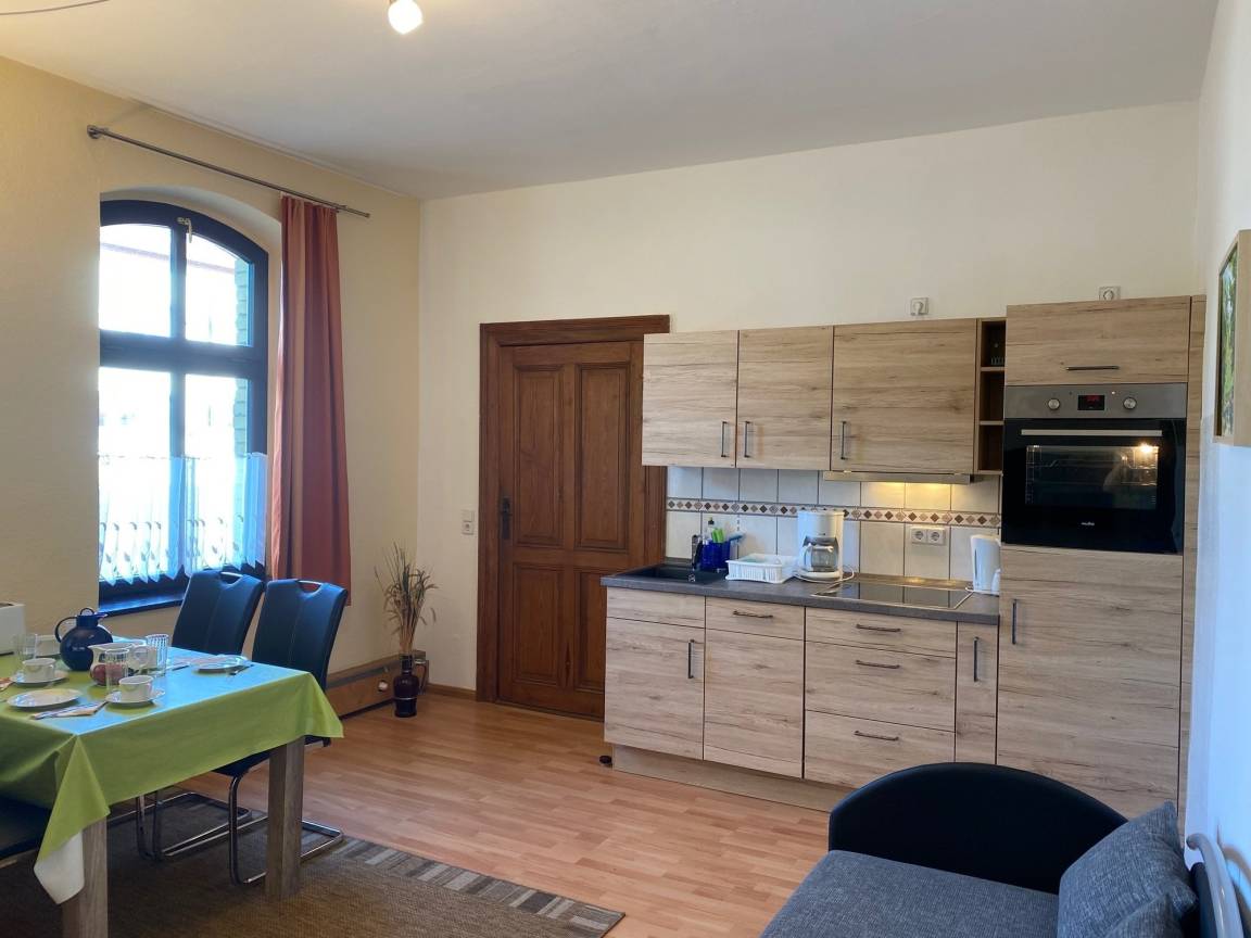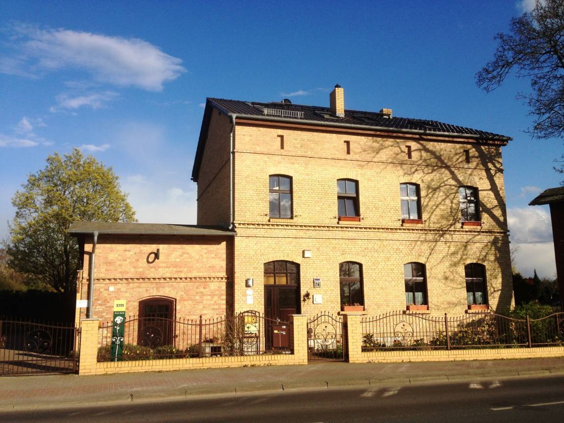 Die Ferienwohnung befindet sich in einem liebevoll restaurierten Backsteinhaus, welches die DR-Bahn um 1890 an der Ostbahn errichtete. Diese ist modern eingerichtet, gemütlich und mit allem ausgestattet was Sie für Ihren Aufenthalt benötigen. In einer gemütlichen Kellerbar können Sie mit Freunden feiern ,Grill - und Feuerstelle sorgen im Garten für Gemütlichkeit. Ein reservierter Parkplatz pro Wohnung steht Ihnen zur Verfügung.( Bis Größe Volkswagen T4)