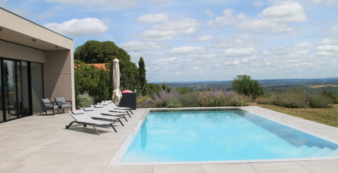 „La maison a époustouflé tous les membres de la famille: Grande, belle, point de vue magique à tout moment de la journée, équipement de grande qualité, piscine très agréable. L'accueil et l'aide de Nathalie et son équipe ont été formidables, et par la réactivité et par la gentillesse. Un grand merci. Cette semaine restera gravée dans la tête de chacun. Ne changez rien!“