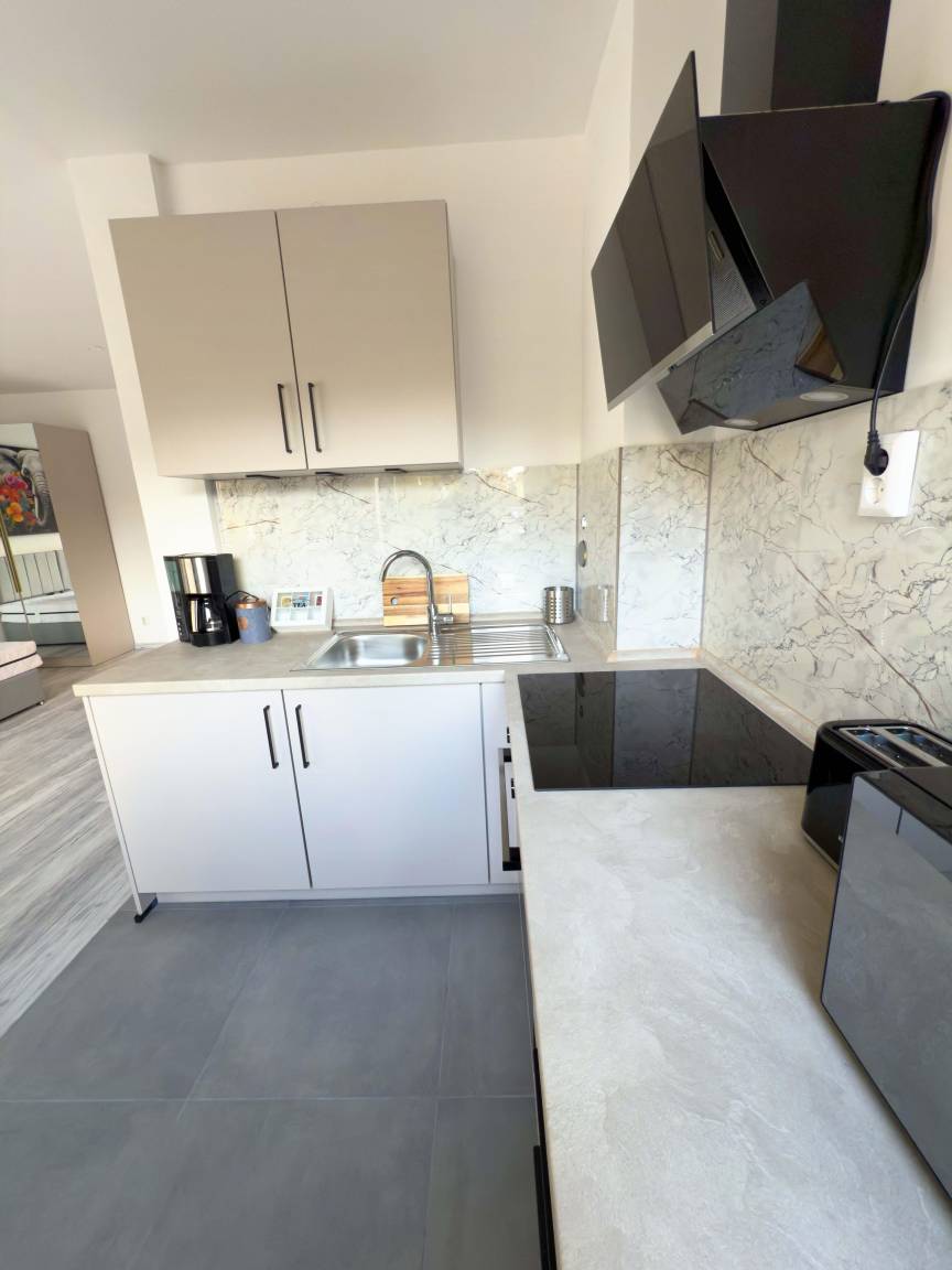 Die lichtdurchflutete Wohnung mit bodentiefen Fenstern bietet eine moderne, voll ausgestattete Küche und ein neues Badezimmer.