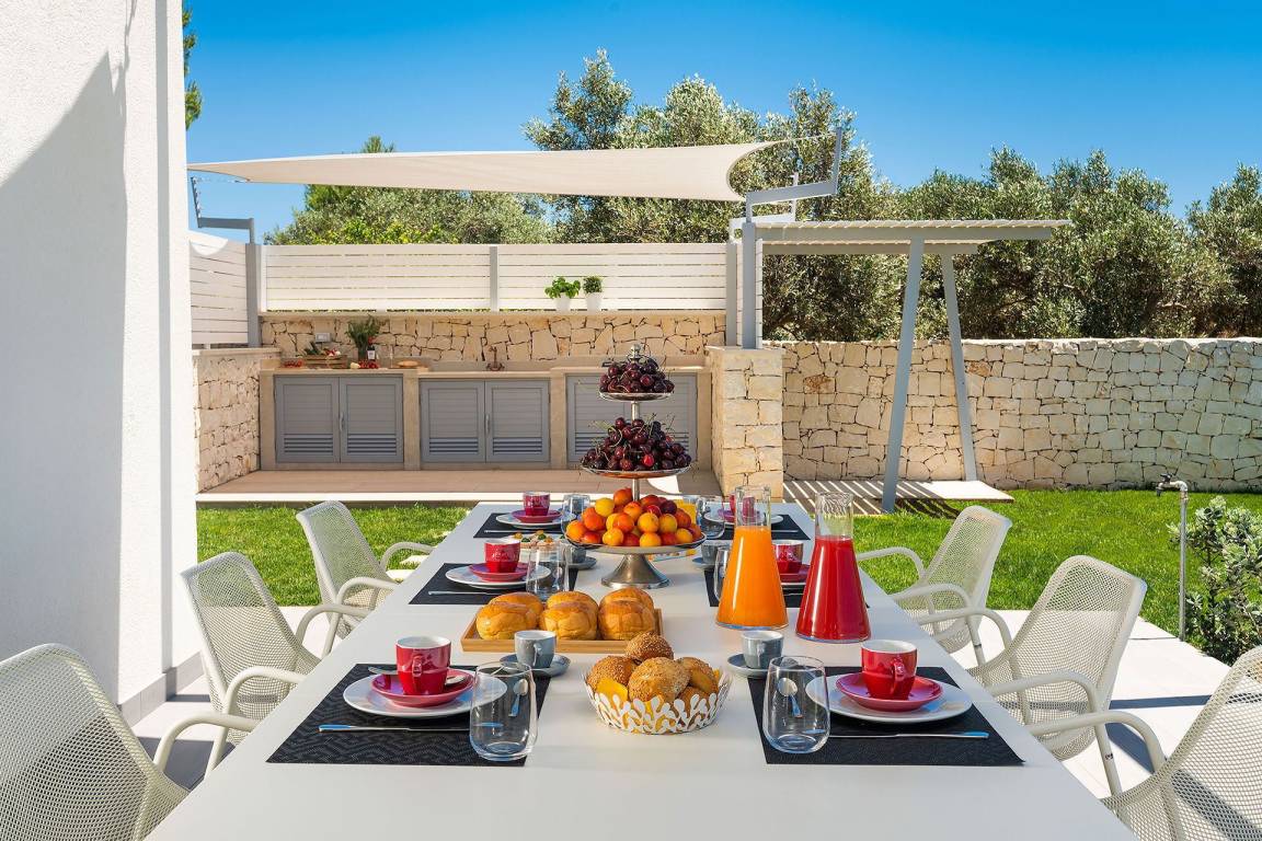 Die Küche ist mit einer Mikrowelle ausgestattet. Die Villa verfügt über eine Klimaanlage in allen Räumen sowie eine Waschmaschine. Ein Satellitenflachbildfernseher steht zur Verfügung. Das Außenbereich ist mit einem Grill und einer privaten Terrasse ausgestattet; ein privater Swimmingpool befindet sich im Garten.