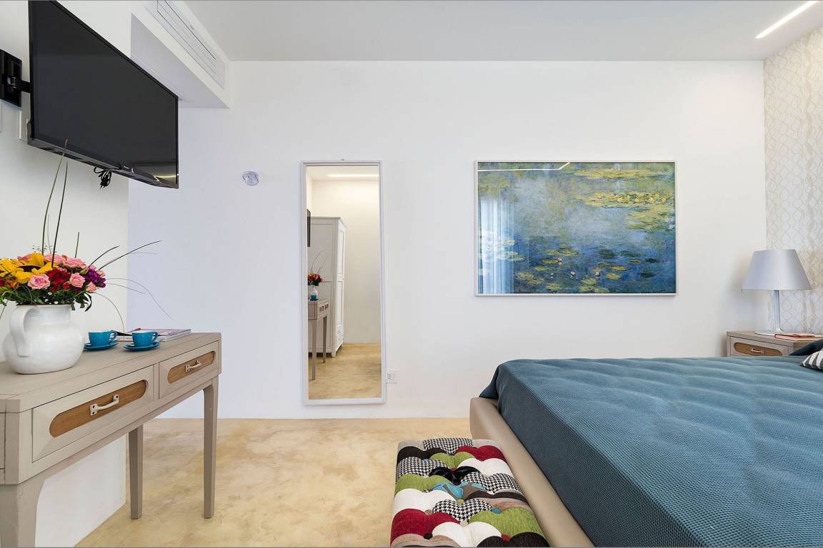 Die Villa Federica bietet Platz für bis zu 8 Gäste und verfügt über 4 Schlafzimmer und 4 Bäder. Die Räume sind großzügig geschnitten und verteilen sich über mehrere Geschosse. Jedes Schlafzimmer ist komfortabel und elegant möbliert. Die 4 Bäder sind gut ausgestattet und von den Wohn- und Schlafbereichen leicht erreichbar. Die Raumaufteilung ermöglicht einen natürlichen Fluss zwischen Wohn-, Ess- und Schlafzimmern.