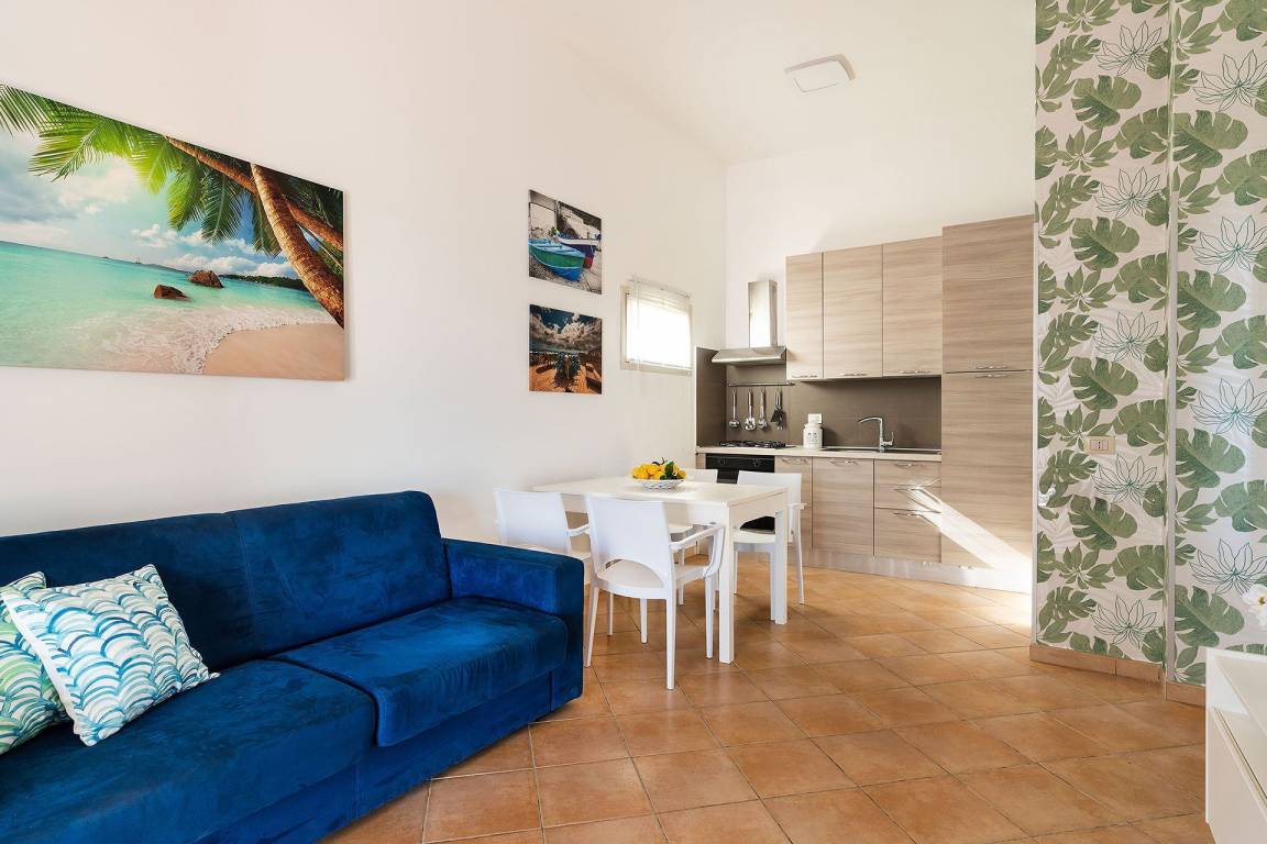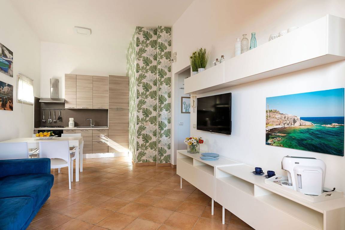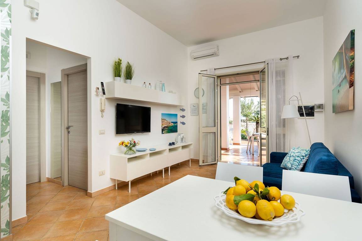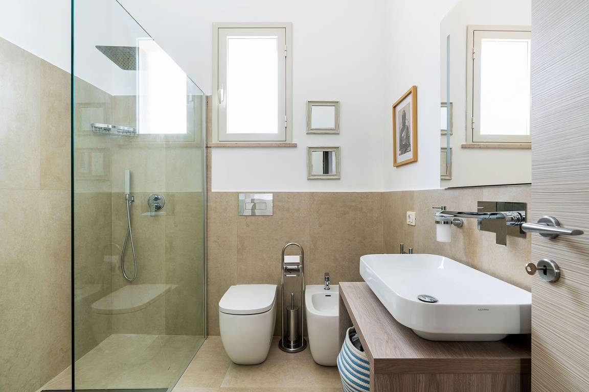 Die Villa Stella Marina bietet eine Gesamtfläche von insgesamt 5 Gästen Platz und verfügt über 2 Schlafzimmer und 2 Bäder. Das Erdgeschoss und das erste Obergeschoss sind funktional aufgeteilt, wobei die Schlafzimmer private Rückzugsbereiche für Familien oder kleinere Gruppen darstellen.