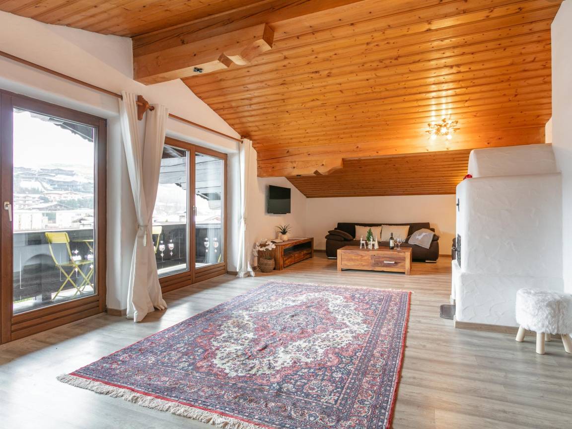 Hausbeschreibung : Entdecke ein familienfreundliches Dachgeschoss-Apartment in Kitzbühel, Tirol, mit sonnigem Balkon und Blick auf die umliegende Bergwelt. Zwei Schlafzimmer, ein Wohn- und Essbereich mit Doppelschlafcouch sowie eine voll ausgestattete Küche bieten idealen Komfort für Familien und kleine Reisegruppen. Perfekt für Sommer- und Winterurlaub in den Tiroler Alpen