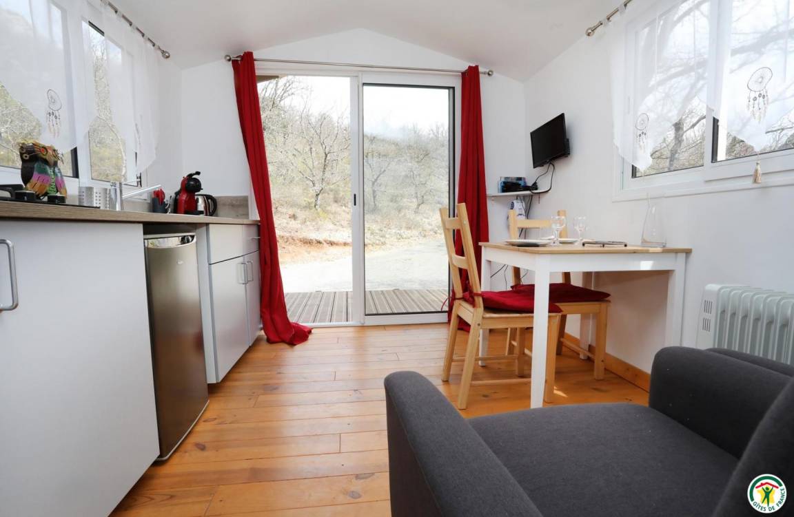 „Un logement inédit, posé à flanc de falaise. Un véritable havre de paix avec tout le confort nécessaire, idéal pour les randonneurs et avec toutes les commodités à 20-30 minutes.“