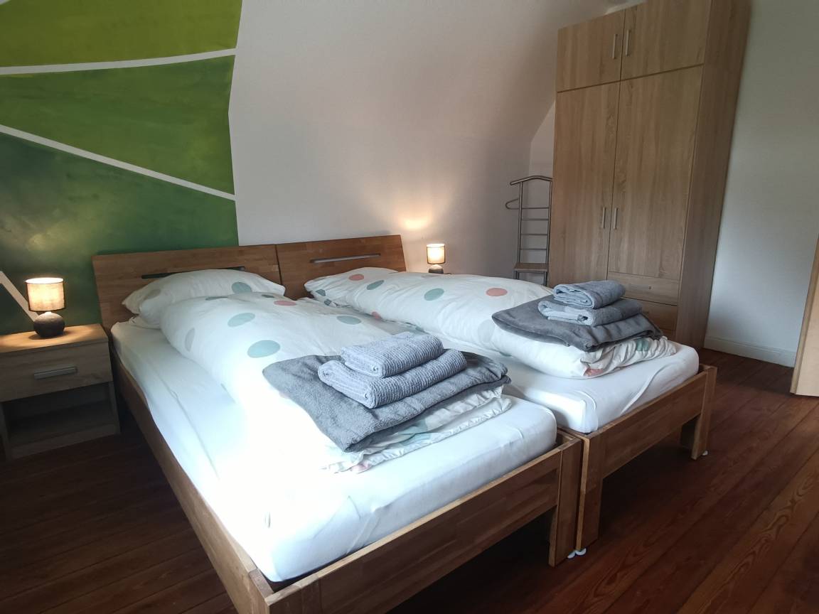 Das Ost- und Nordseezimmer bieten je ein Doppelbett (1,80 x 2m) oder zwei Einzelbetten. Das Südseezimmer verfügt über drei Schlafplätze, wahlweise drei Einzelbetten oder ein Doppel- und ein Einzelbett. Das Erdgeschoss ist barrierearm gestaltet, ebenso das Duschbad dort. Im Obergeschoss finden Sie das Nord- und Südseezimmer sowie ein Wannenduschbad.