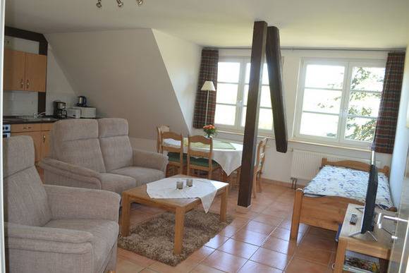 In der gut ausgestatteten Küche finden Sie neben einem Kühlschrank auch eine Mikrowelle und einen Backofen. Fahrräder werden ebenfalls gerne zur Verfügung gestellt. Selbstverständlich können Sie auch die Waschmaschine und einen Trockner nutzen. Auf Anfrage steht Ihnen auch ein Babybett und ein Hochstuhl zur Verfügung. Haben Sie ein Auto dabei? Ein PKW-Stellplatz gehört zur Ferienwohnung. Der Bahnhof ist 4 km entfernt.