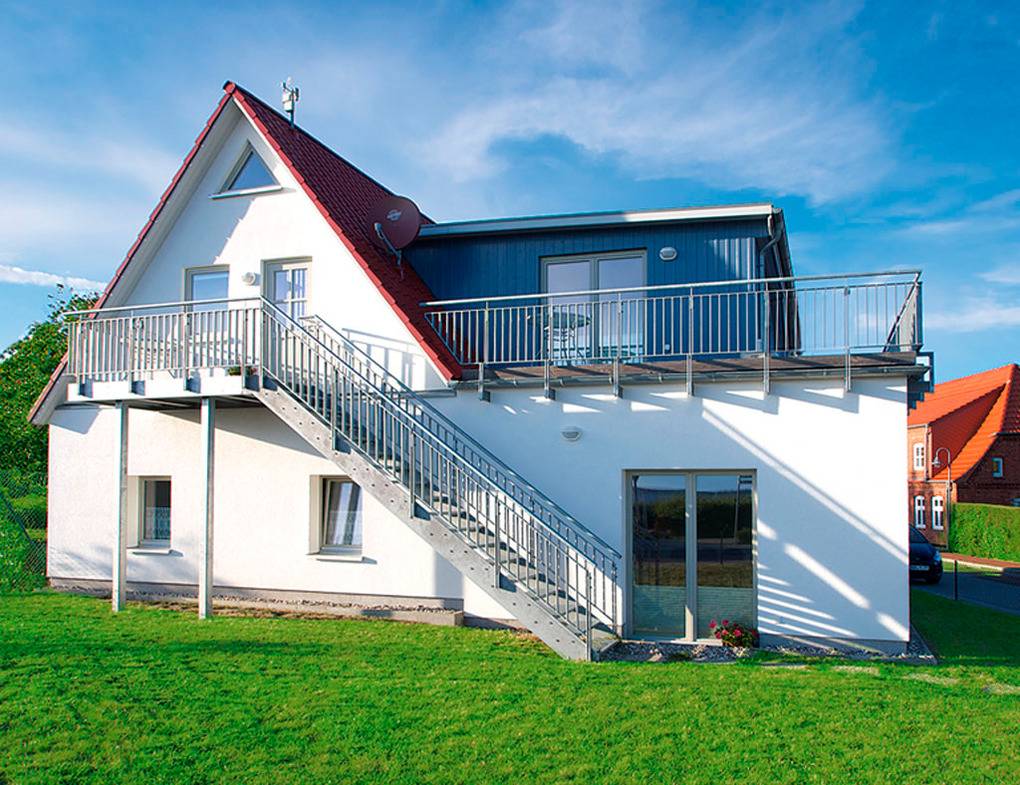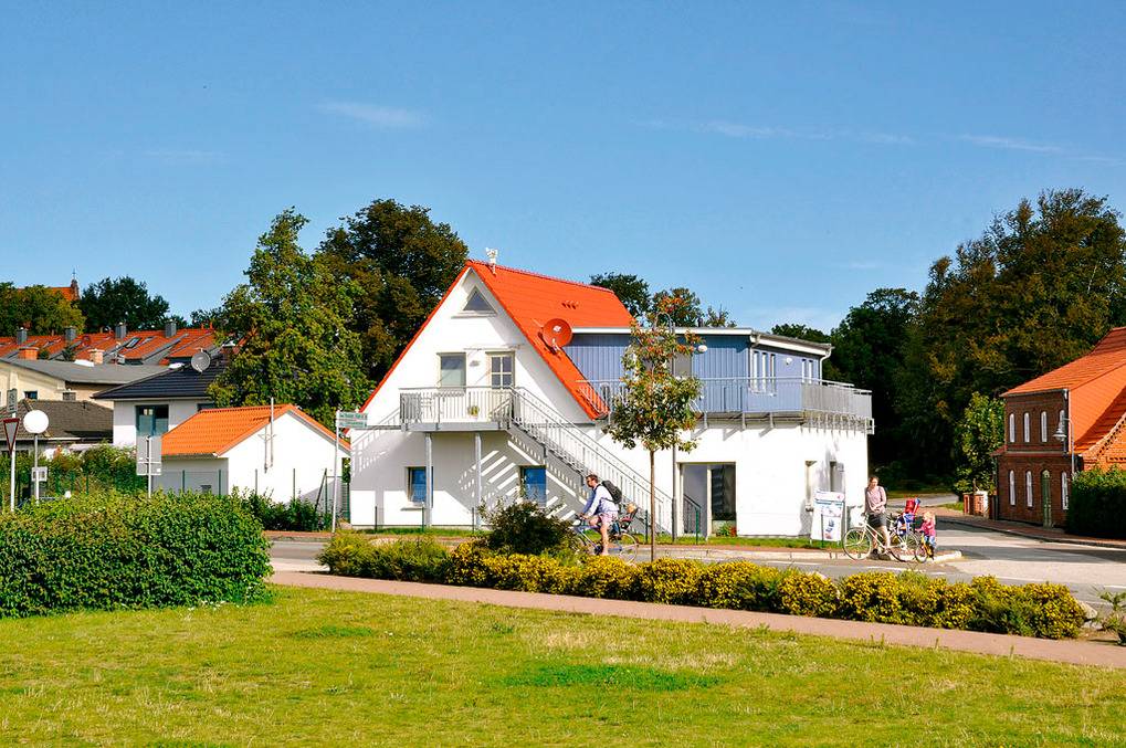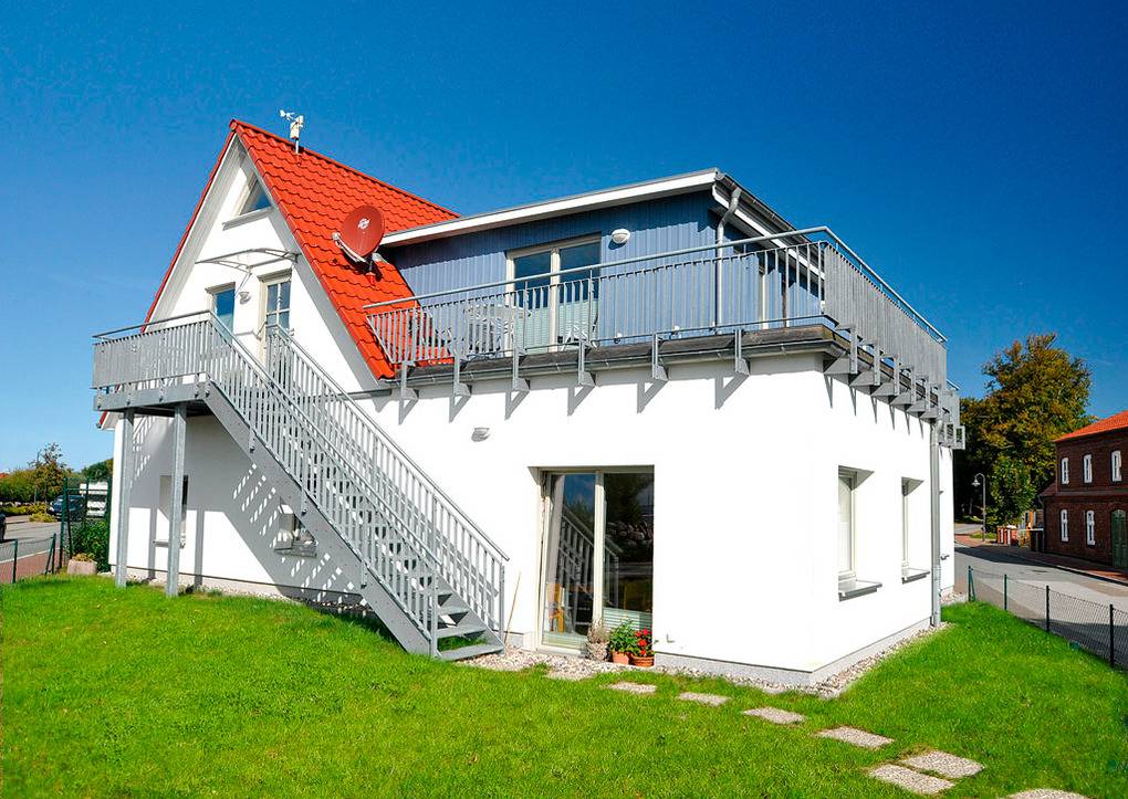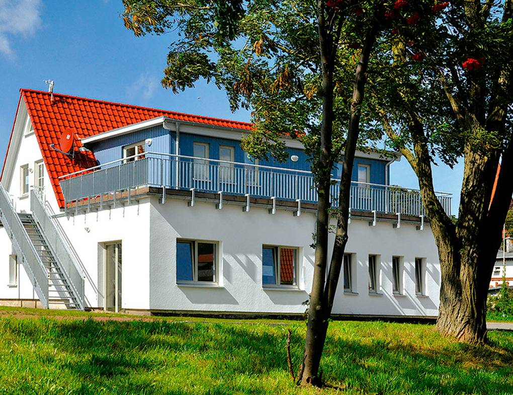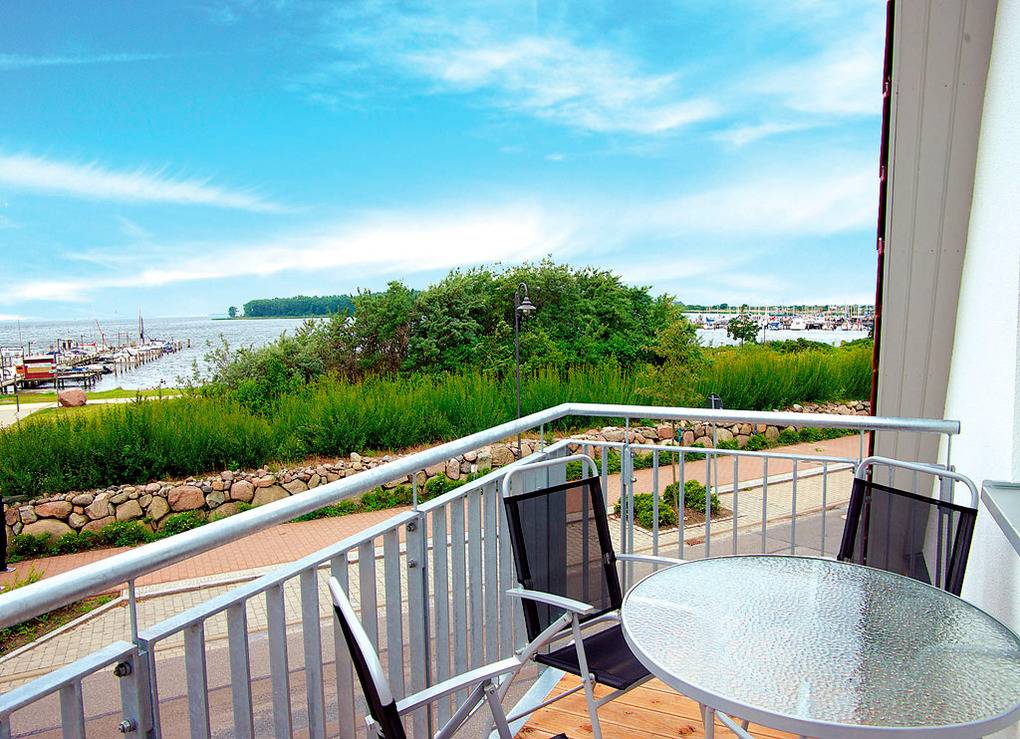Haus: Modernes Apartmenthaus mit 2 schönen Fewos. Geschmackvolle, allergikerfreundliche Einrichtung. Zentralheizung. Nichtraucherwohnungen mit Balkon (Sitzmöbel, herrlicher Blick auf Salzhaff und Segelhafen). Kostenloser Internetzugang über Wlan. 1 Pkw-Stellplatz pro Fewo vorhanden.