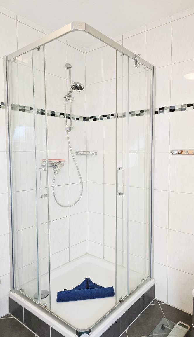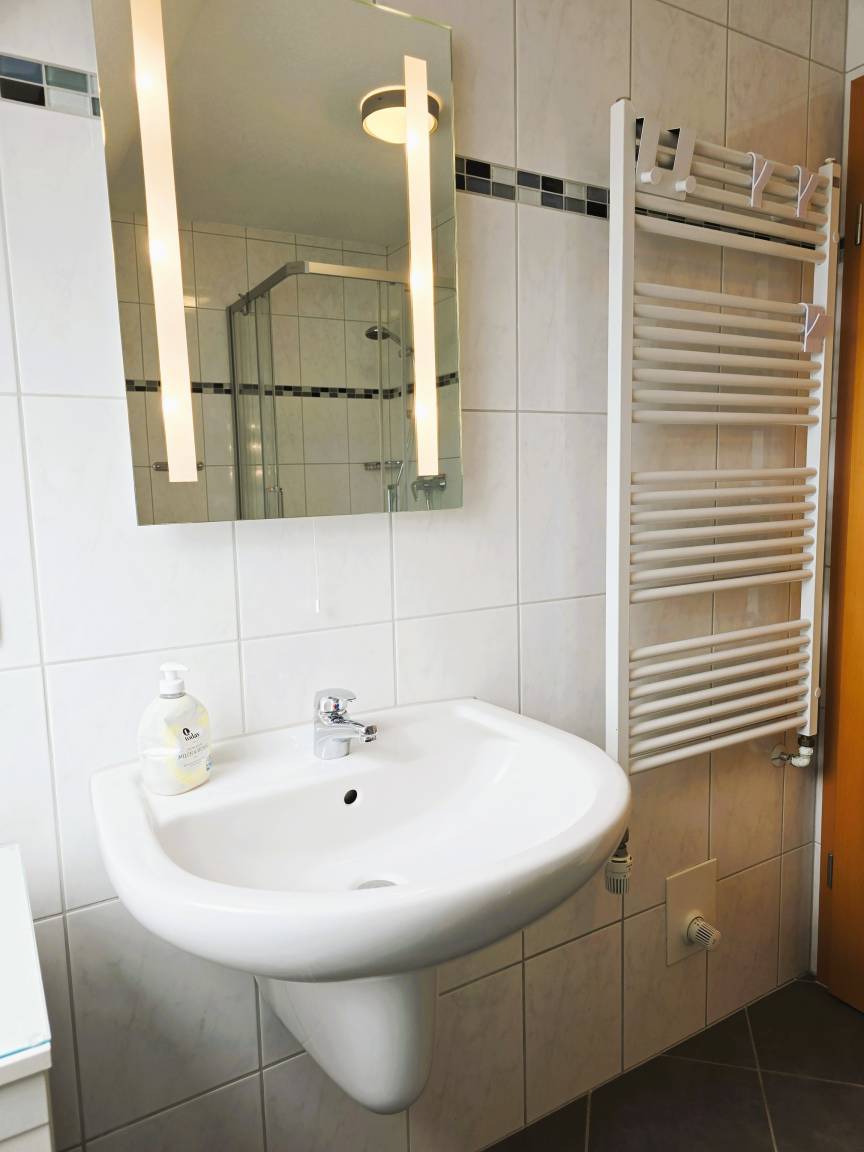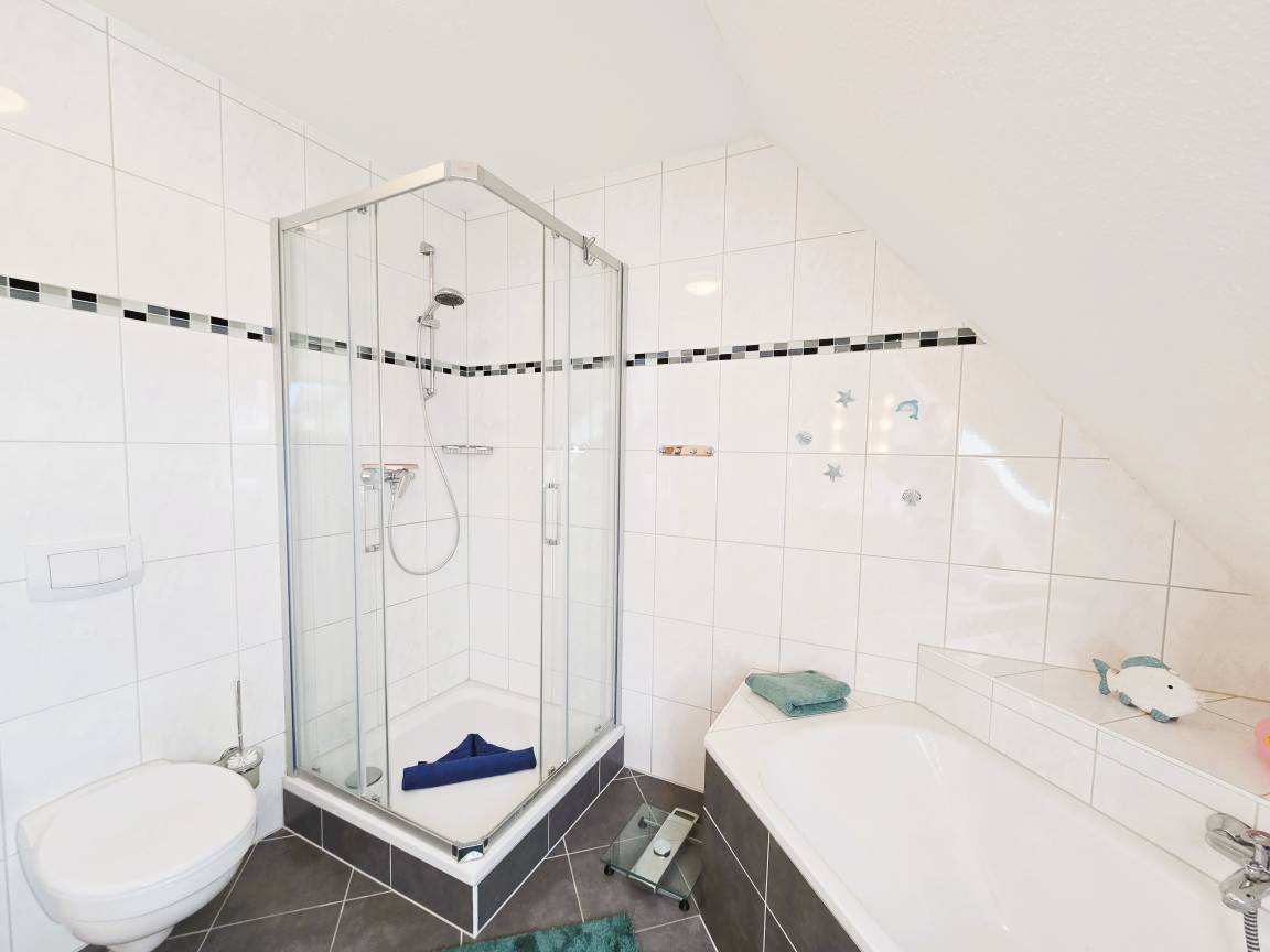 Im Badezimmer stehen sowohl Dusche als auch eine Badewanne zur Verfügung.