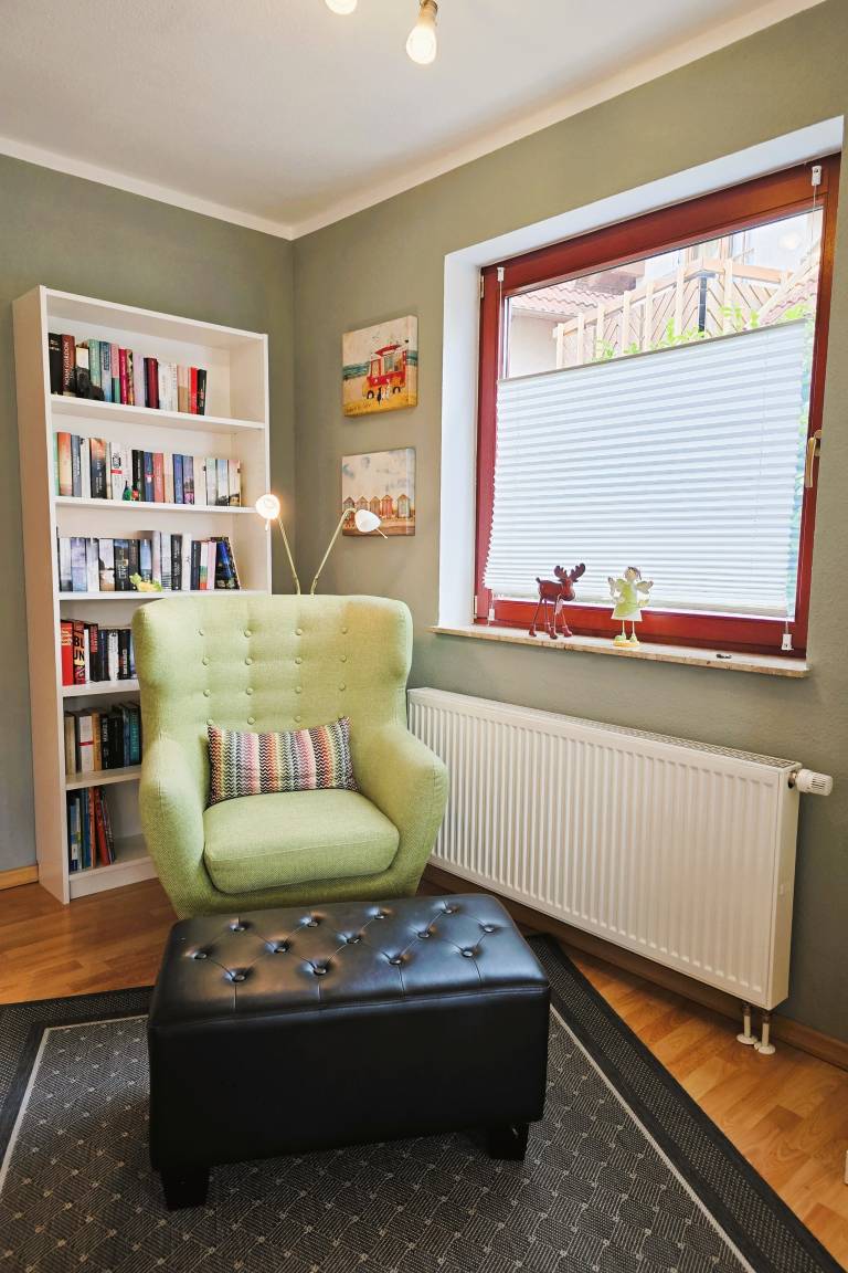 Die Einrichtung ist liebevoll und farbenfroh gestaltet, mit vielen kleinen Details, die eine warme und persönliche Atmosphäre schaffen.