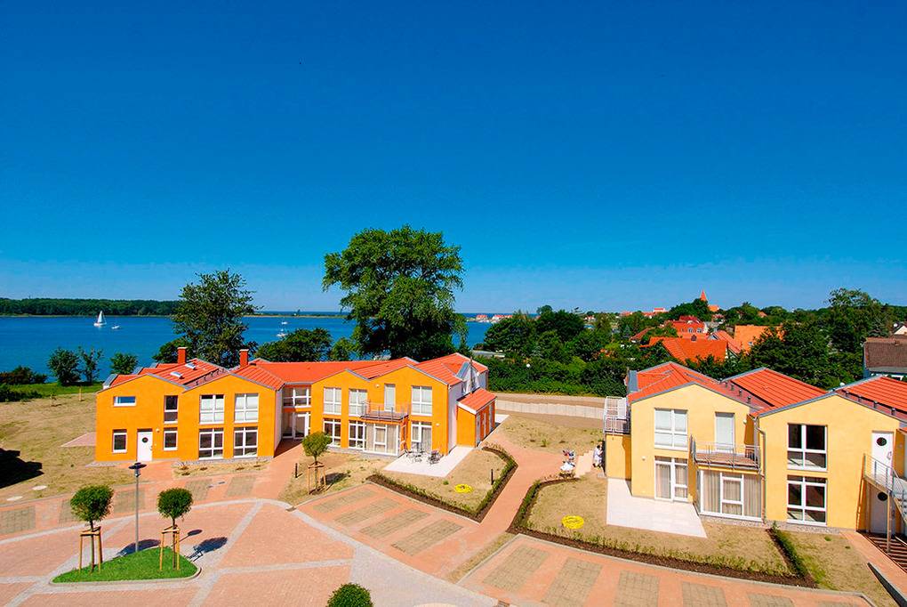 Haus: Sehr schöne Ferienresidenz mit modernen Komfortwohnungen. Drei ansprechende, im mediterranen Reihenhausstil konzipierte Gebäude mit Ferienwohnungen und Ferienhäusern. Alle sehr hell gestaltet mit großen Panoramafenstern, die meisten mit schönem Wasserblick. Hochwertige Ausstattung mit Flachbild-Sat-TV, Radio/CD, moderner Einbauküche (Backofen, Mikrowelle, Spülmaschine). Föhn, Handtuchwärmer im Bad. Kostenloser Internetzugang über W-Lan. Zentralheizung. 1 reservierter Pkw-Stellplatz pro Fewo.