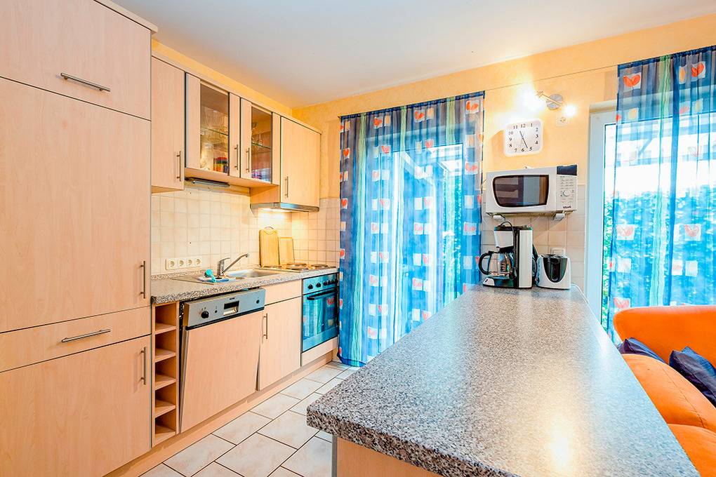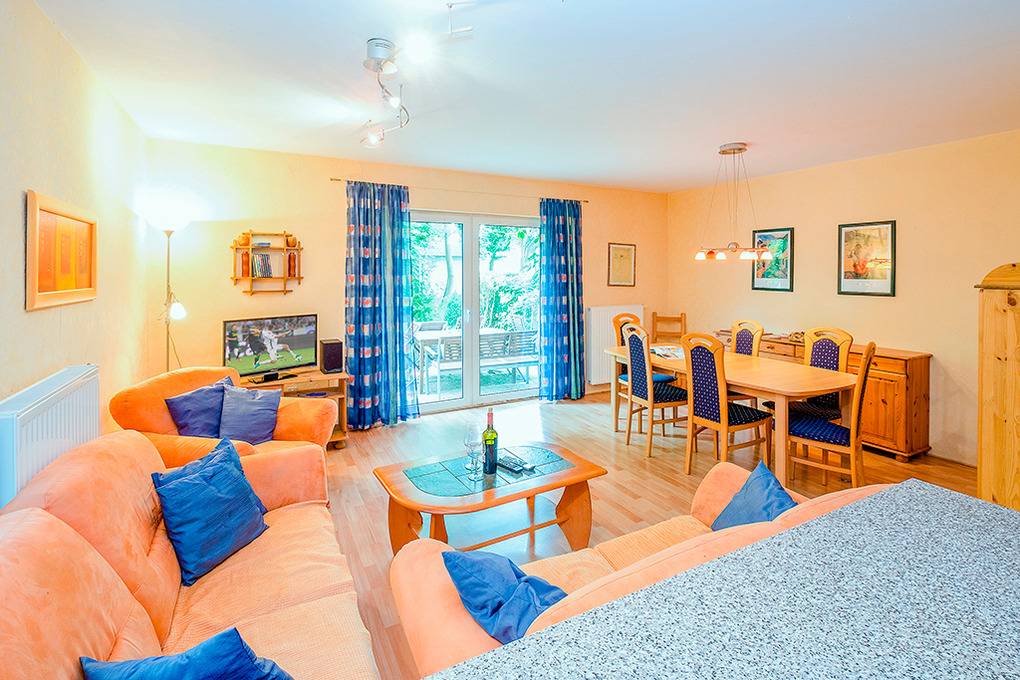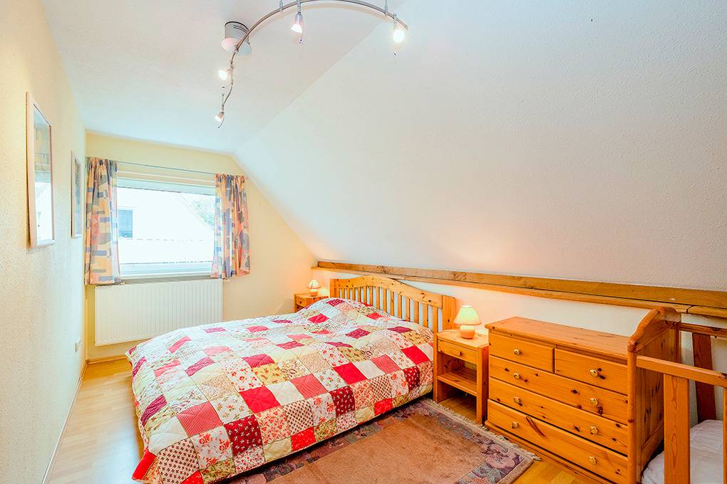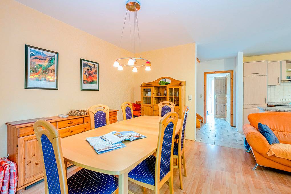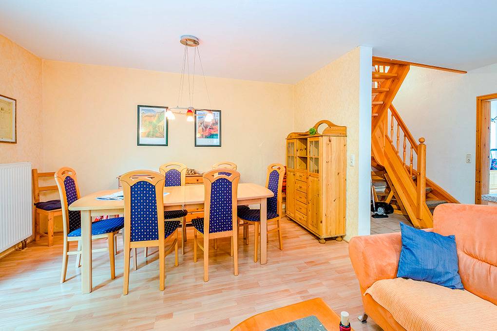 D 132.8 Ferienhaus 4-8 Pers.: 5-Zimmerhaushälfte, 100 qm Wohnfläche über 3 Etagen. Parterre: Großer Wohnraum (35 qm) mit gemütlicher Sitzecke, Sat-TV, Stereoanlage, Esstisch. Küchenbereich mit moderner Einbauküche (Backofen, Mikrowelle, Spülmaschine), offen zum Wohnraum. Bad/WC. Weiteres Bad: Du, WC. 1. Etage (leichte Schrägen): Doppelzimmer. 2-Bettzimmer. 2-Bettzimmer mit Etagenbett. 2. Etage (Schrägen): Doppelzimmer.