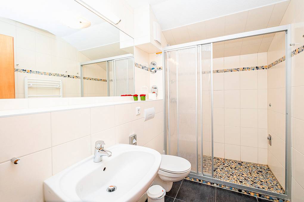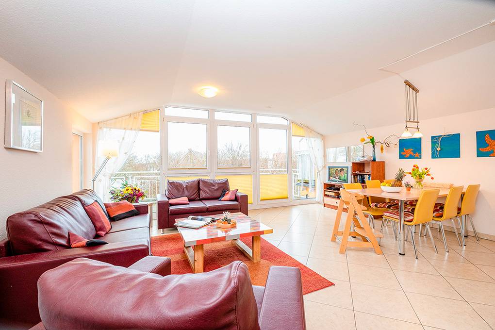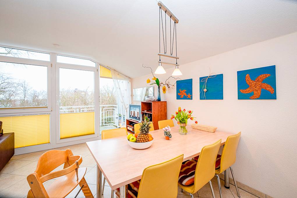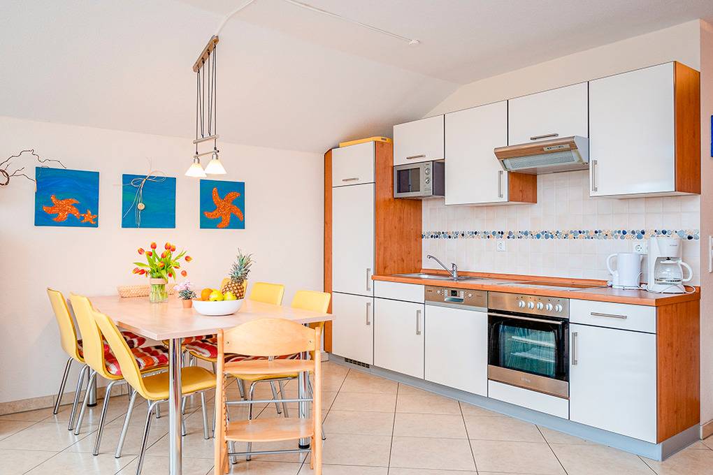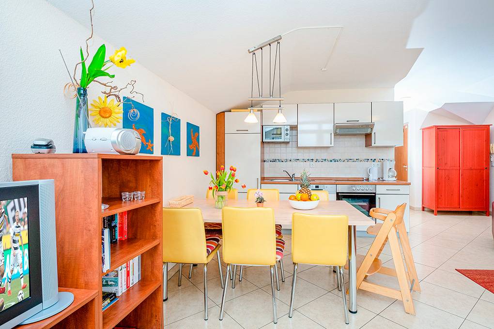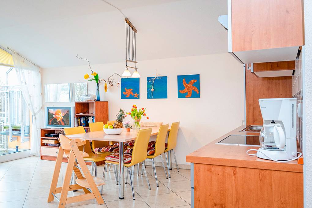 Nebenkosten Endreinigung 146 €/Aufenthalt. Kurtaxe. Bettwäsche leihbar 15 €/Pers (Bestellung). Handtücher leihbar 8 €/Pers (Bestellung). Duschvorlage leihbar 10 €/Pers (Bestellung). Zusätzliche Leistungen Kostenloser Internetzugang über W-Lan. 1 Pkw-Stellplatz im Preis inklusive. Kinder Babybett zusätzlich zur maximalen Personenzahl 15 €//Aufenthalt (Bestellung). Hochstuhl 15 €/Aufenthalt (Bestellung). Bollerwagen 20 €/Aufenthalt (Bestellung). Haustier 60 €/Aufenthalt, max. 2 Hunde (Anmeldung).Räume & Aufteilung