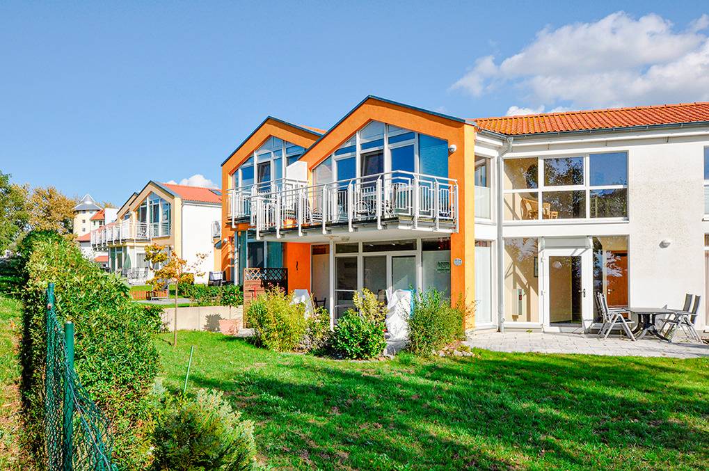 Haus: Sehr schöne Ferienresidenz mit modernen Komfortwohnungen. Drei ansprechende, im mediterranen Reihenhausstil konzipierte Gebäude mit Ferienwohnungen und Ferienhäusern. Alle sehr hell gestaltet mit großen Panoramafenstern, die meisten mit schönem Wasserblick. Hochwertige Ausstattung mit Flachbild-Sat-TV, Radio/CD, moderner Einbauküche (Backofen, Mikrowelle, Spülmaschine). Föhn, Handtuchwärmer im Bad. Kostenloser Internetzugang über W-Lan. Zentralheizung. 1 reservierter Pkw-Stellplatz pro Fewo.