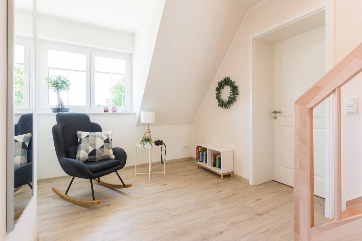 Ihre Ferienwohnung befindet sich im Gutspark Rerik, im 2020 fertiggestellten Cottage-Stil-Haus. Über den gemeinsam genutzten Flur mit Treppenhaus gelangen Sie in Ihr Domizil, wo im Flur Schuhe und Strandutensilien abgestellt werden können.