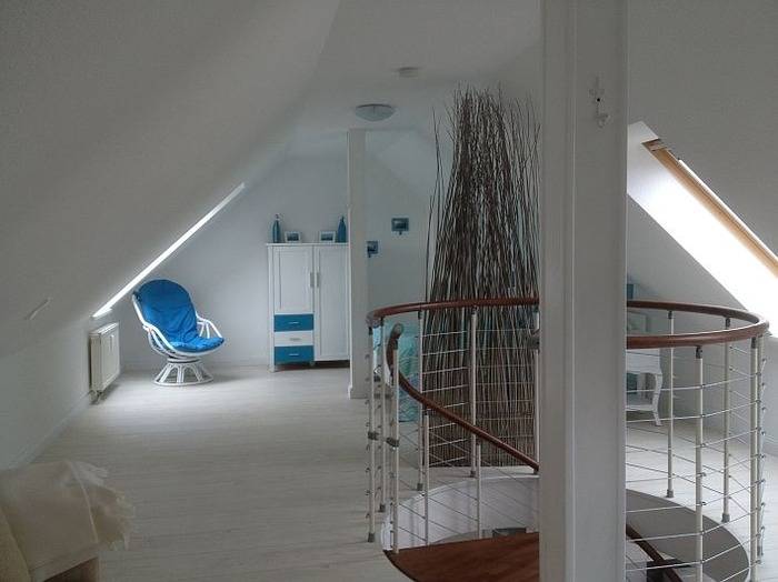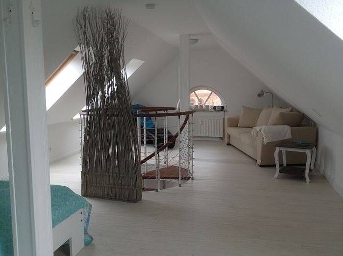Die großzügige und moderne 3-Zimmer-Ferienwohnung befindet sich im Dachgeschoss, mit ausgebautem Spitzboden, des Hauses und ist für 5 Personen ausgestattet.