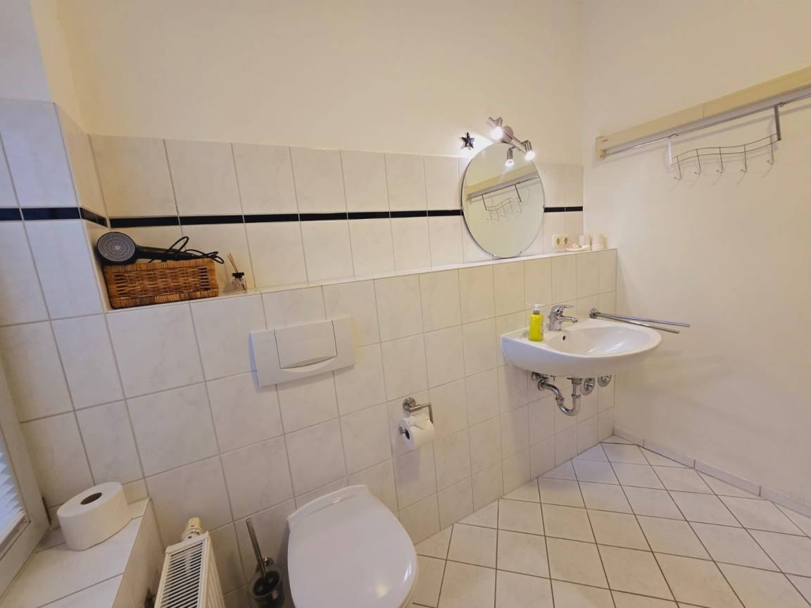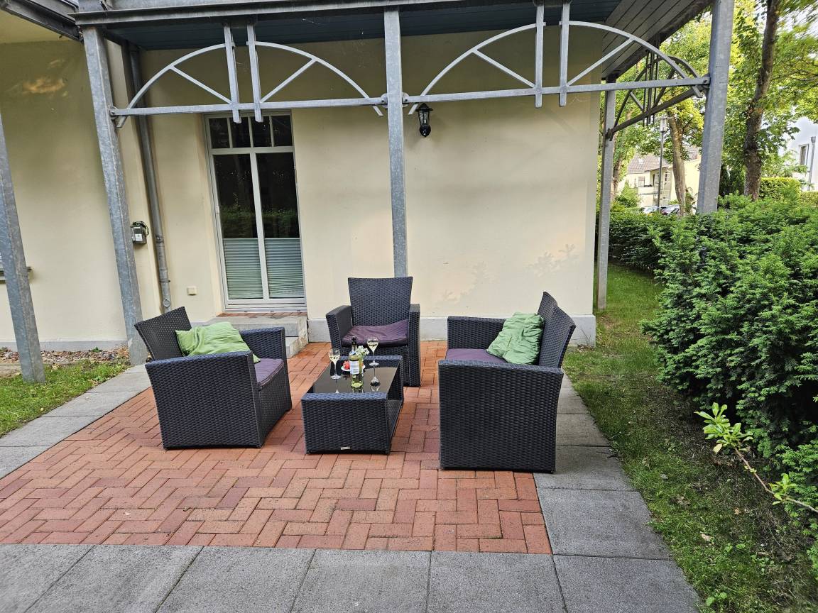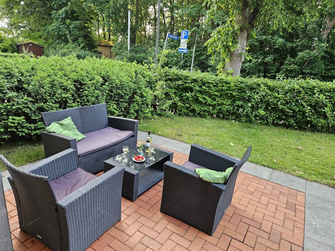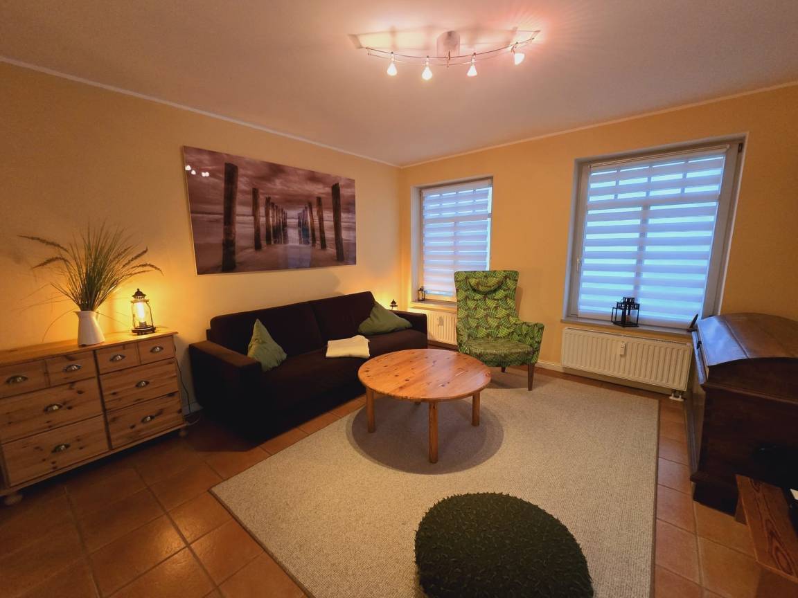 Liebevoll eingerichtete Ferienwohnung im Erdgeschoss. Die 56qm große Wohnung befindet sich in einer Strandvilla im alt-mecklenburgischen Baustil. Das Schlafzimmer verfügt über ein 2x1,80m Doppelbett für süße Träume. Ebenso im Wohnzimmer bietet das komfortable Schlafsofa mit Lattenrost und eigener 2x1,60m Kaltschaummatratze Platz für zwei Personen. In der voll eingerichteten Küche mit Backofen, Spülmaschine und Herd lassen sich köstliche Speisen zubereiten. Ein geräumiges Tageslichtduschbad mit Waschmaschine sorgt für ein abgerundetes Feriendomizil. Im Garten können Sie auf der Terrasse entweder Ihr Frühstück genießen oder den Abend mit einem Grillabend vom Elektrogrill ausklingen lassen. Die Wohnung verfügt über einen kostenlosen Stellplatz und WLAN.