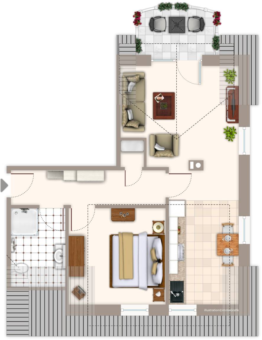 52 m² Ferienwohnung ∙ 1 Schlafzimmer ∙ 2 Gäste