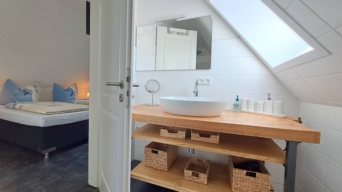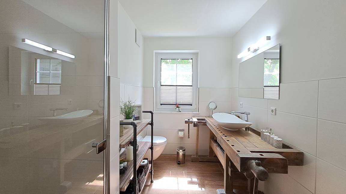 - Nr. II im DG angrenzend an das Schlafzimmer; mit ebenerdiger Dusche, Waschtisch, WC und Föhn