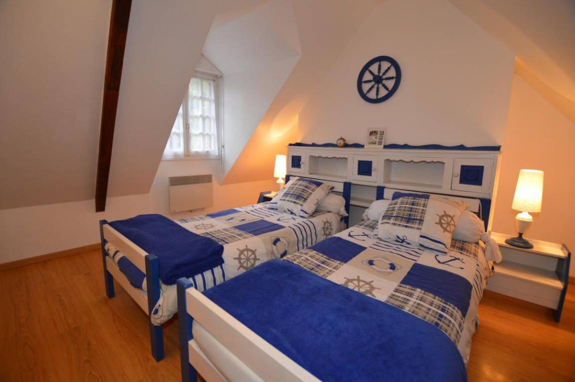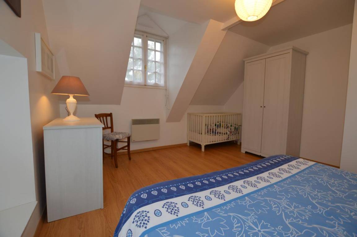 Im Erdgeschoss: großes Wohnzimmer mit Kamin, Lounge und Küchenbereich. Ein Schlafzimmer (1 Doppelbett 160). TOILETTE. Obergeschoss: 1 Schlafzimmer (1 Doppelbett), 1 Schlafzimmer (2 Einzelbetten) + 1 Kinderbett, Badezimmer mit WC. Elektroheizung.
