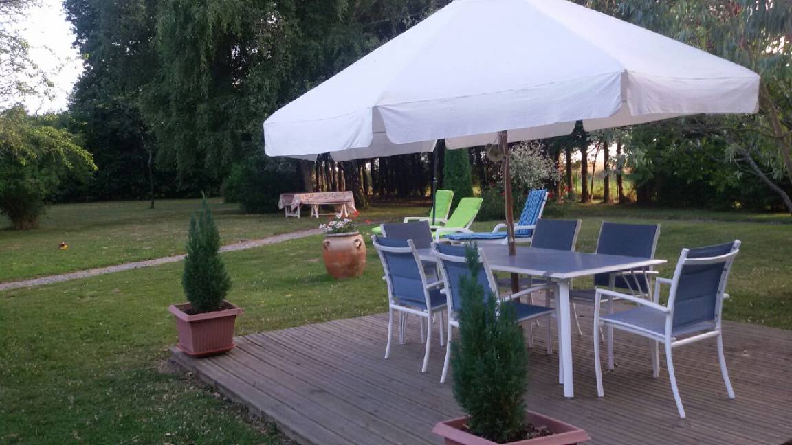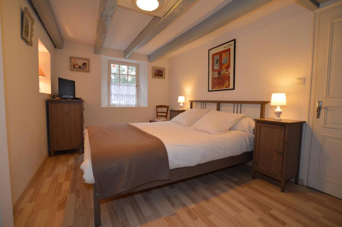 „A good sized gite in a very peaceful location with large grounds to wander around. As with a lot of this type of gite it is very dark inside but better once all the shutters have been opened. The bedrooms are comfortable and the family bathroom is fine. The downstairs toilet is very compact and could be slightly better if the mop and brooms could be stored elsewhere. The tree over the outside table is now significantly larger and, with roosting birds and falling leaves, the table and chairs need to be kept clean if you wish to eat outside. However, the location is ideal to explore the local area and the only sounds we heard was birdsong, which was delightful. The inside of the gite was very clean and well equiped for our needs, and Anais, who was very accommodating with our fairly early departure, was lovely.“